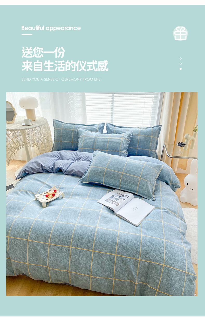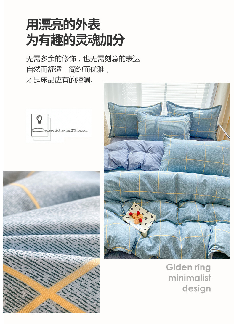 공장 직접 피부 친화적 인 코튼 알로에 베라 3 피스 세트 활성면 샌딩 퀼트 커버 시트 도매 선물 4 피스 세트스토어 가기