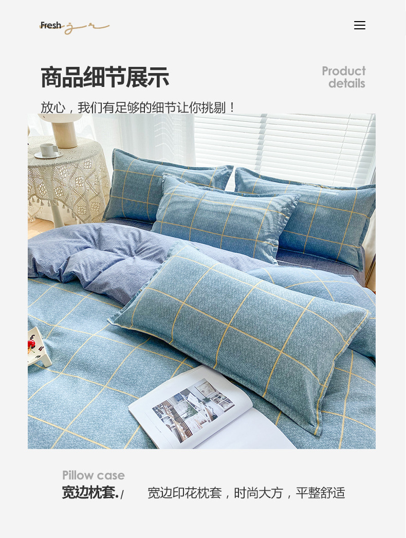 공장 직접 피부 친화적 인 코튼 알로에 베라 3 피스 세트 활성면 샌딩 퀼트 커버 시트 도매 선물 4 피스 세트