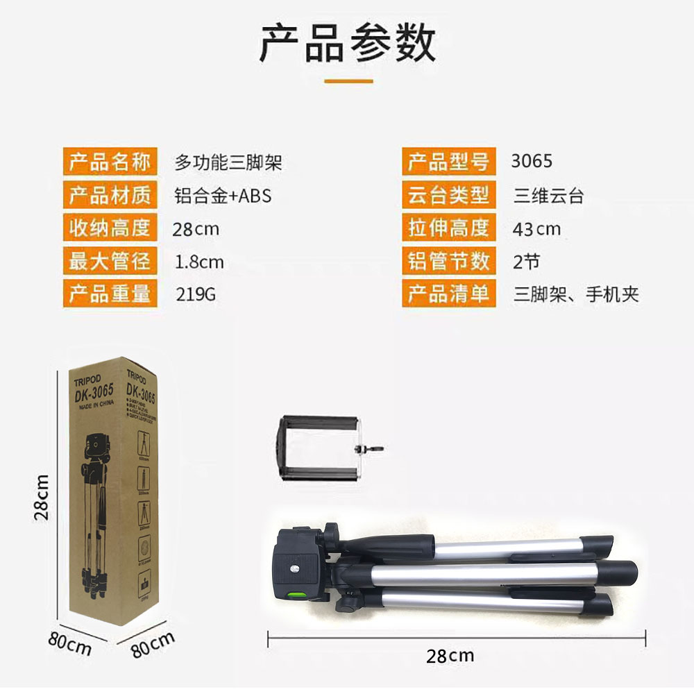 3065 알루미늄 합금 2 섹션 휴대 전화 라이브 3 다리 브래킷 낚시 램프 프로젝터 카메라 셀카 휴대 전화 랙