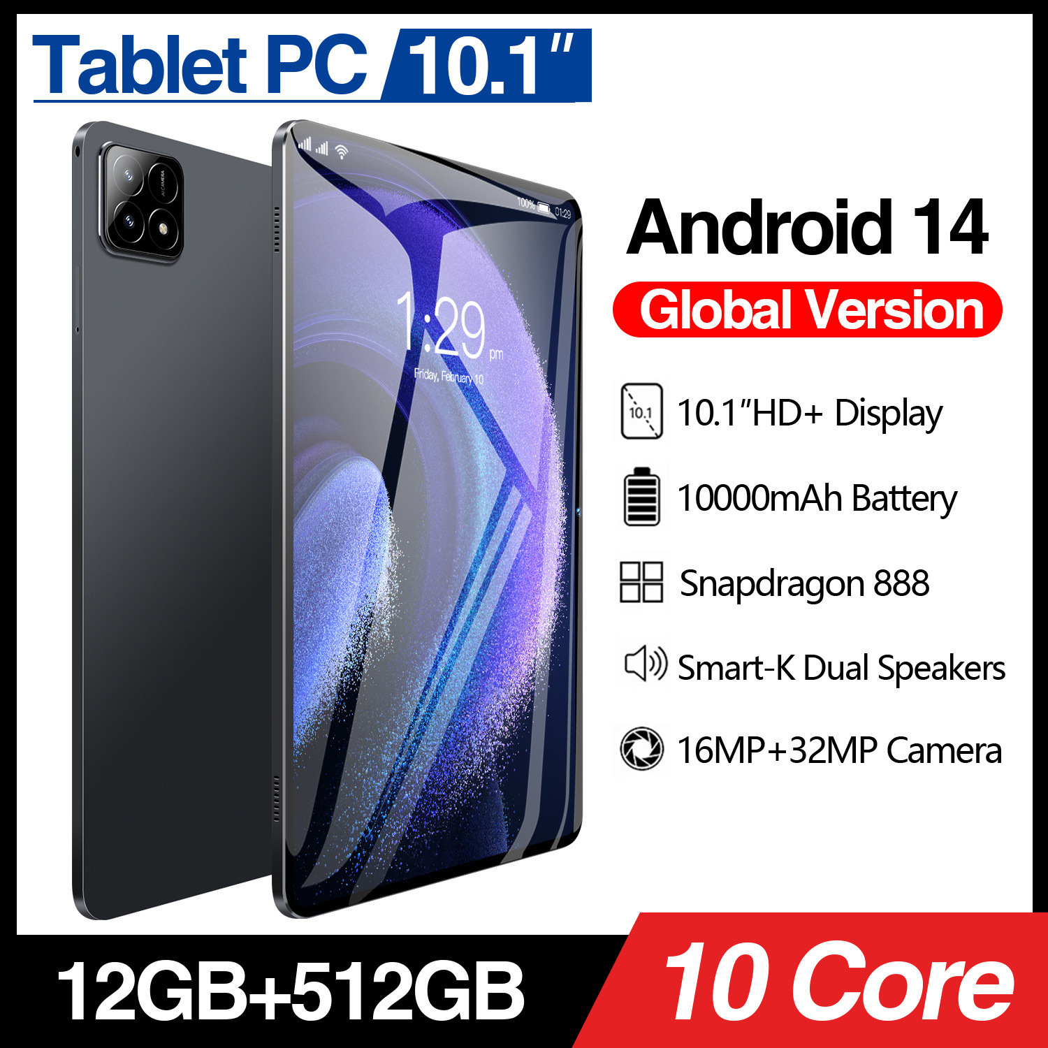 2024 국경 대외 무역 10.1 인치 태블릿 wifi4G 듀얼 카드 풀 넷콤 어린이 학습 태블릿스토어 가기