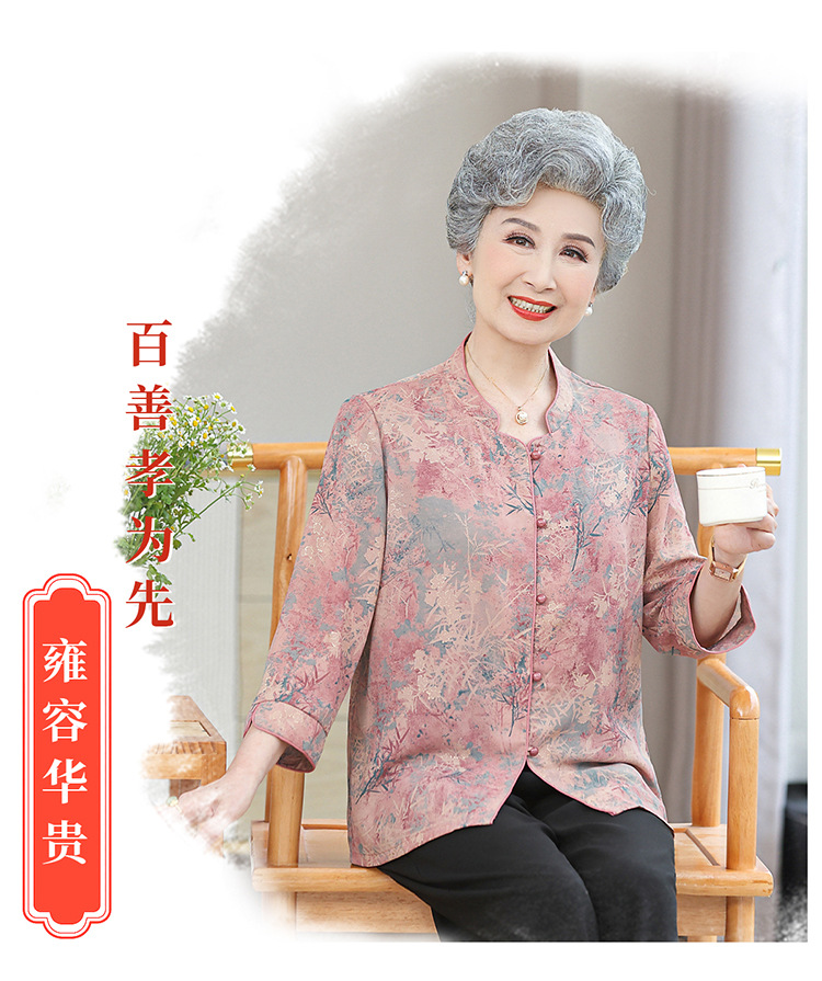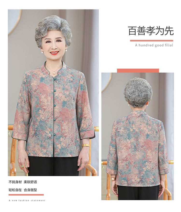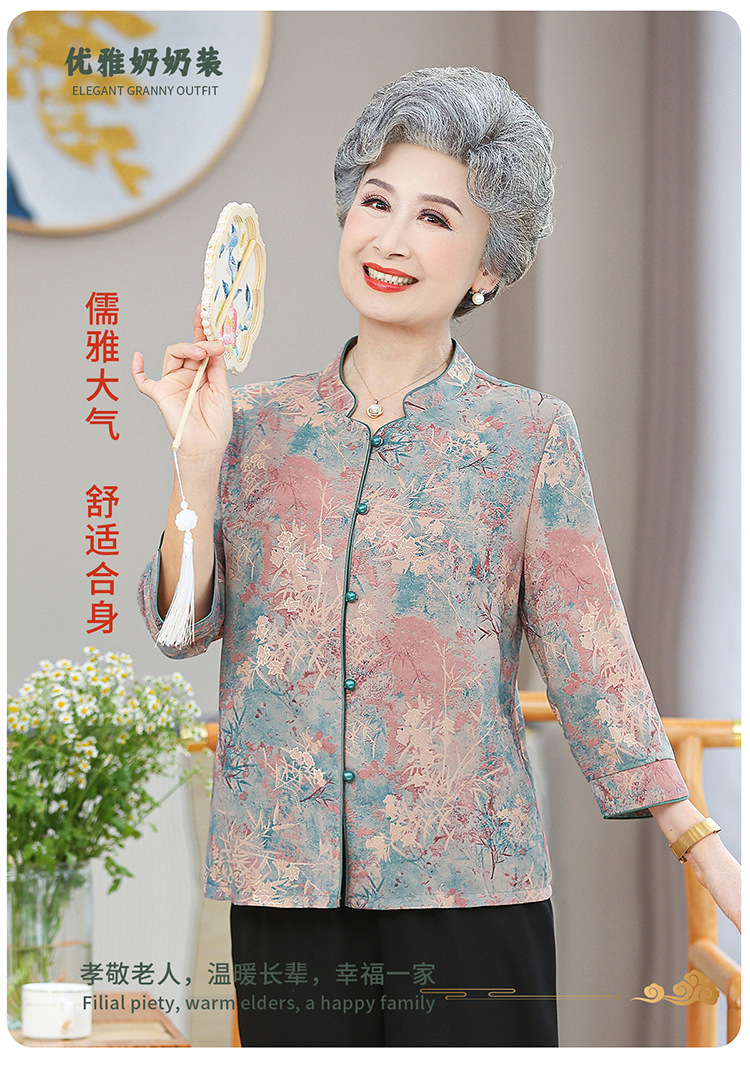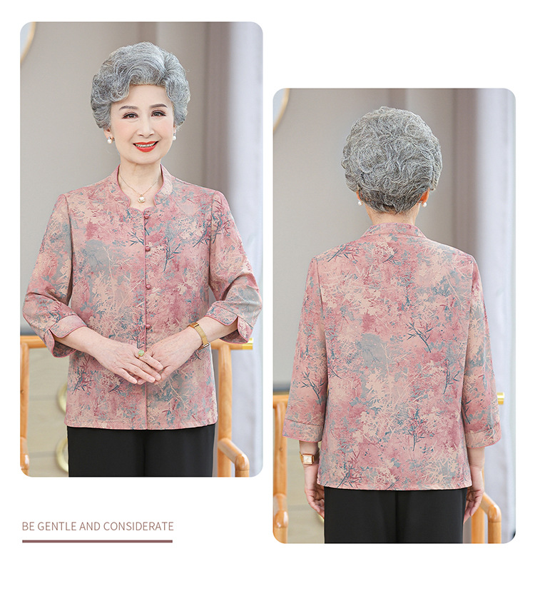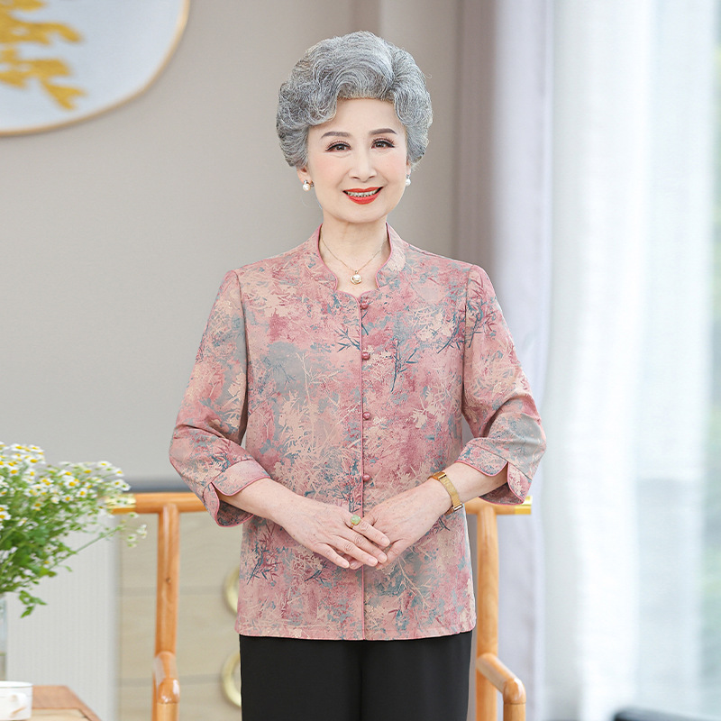 노인의 여름 옷 새 여성 셔츠 할머니 옷 중년 및 노인 어머니의 옷 인쇄 70 세 레이디 셔츠