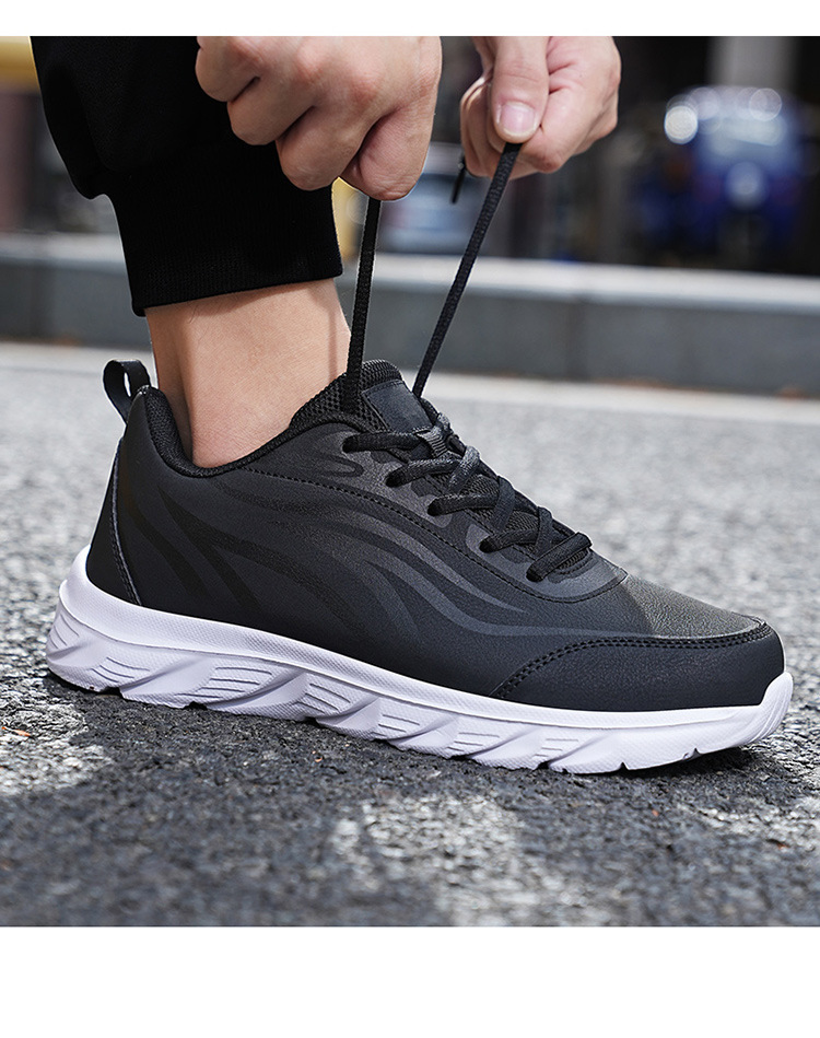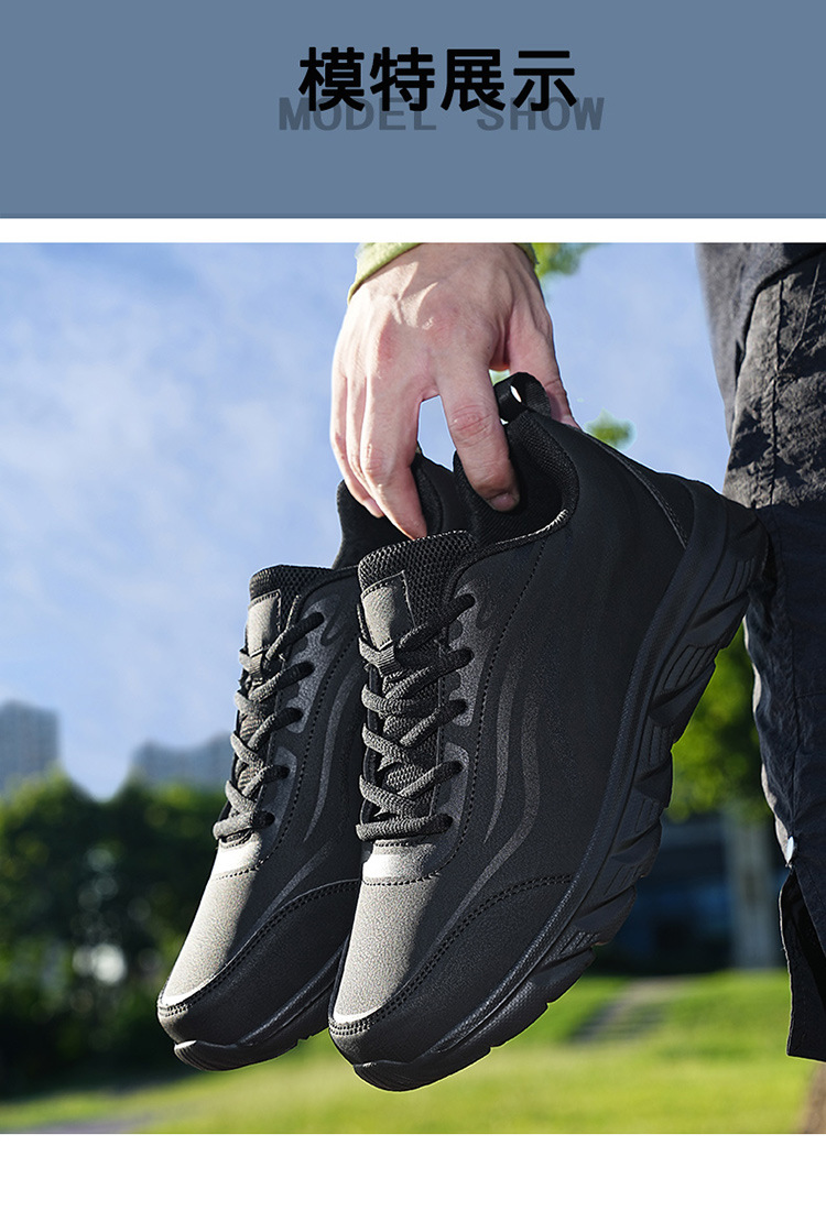 봄과 가을 남성 신발 운동화 검은 가죽 방수 경량 여행 런닝 신발 플러스 사이즈 남성용 소프트 단독 캐주얼 작업 신발스토어 가기