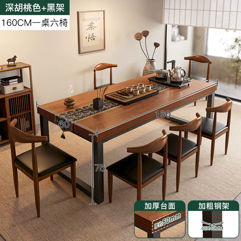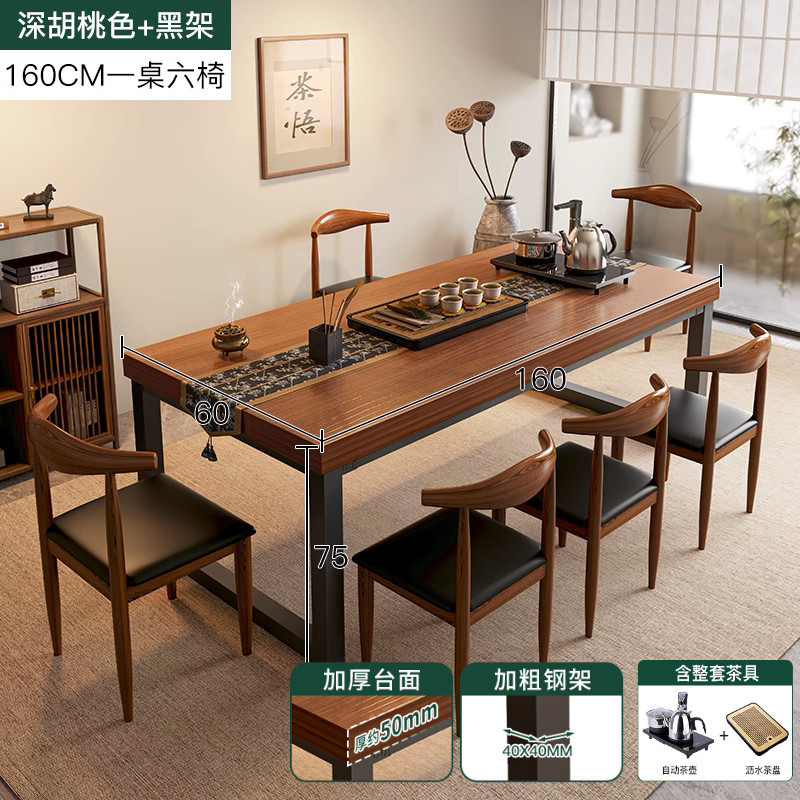 • [1 개의 테이블과 6 개의 의자] 1.6 미터★{자동 주전자 대나무 차 트레이}