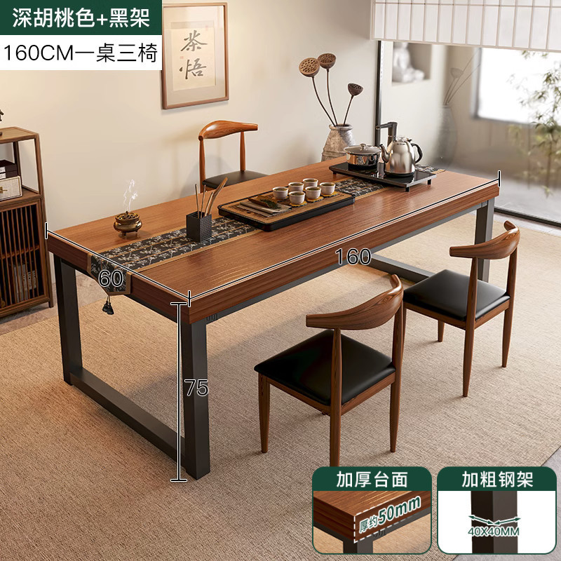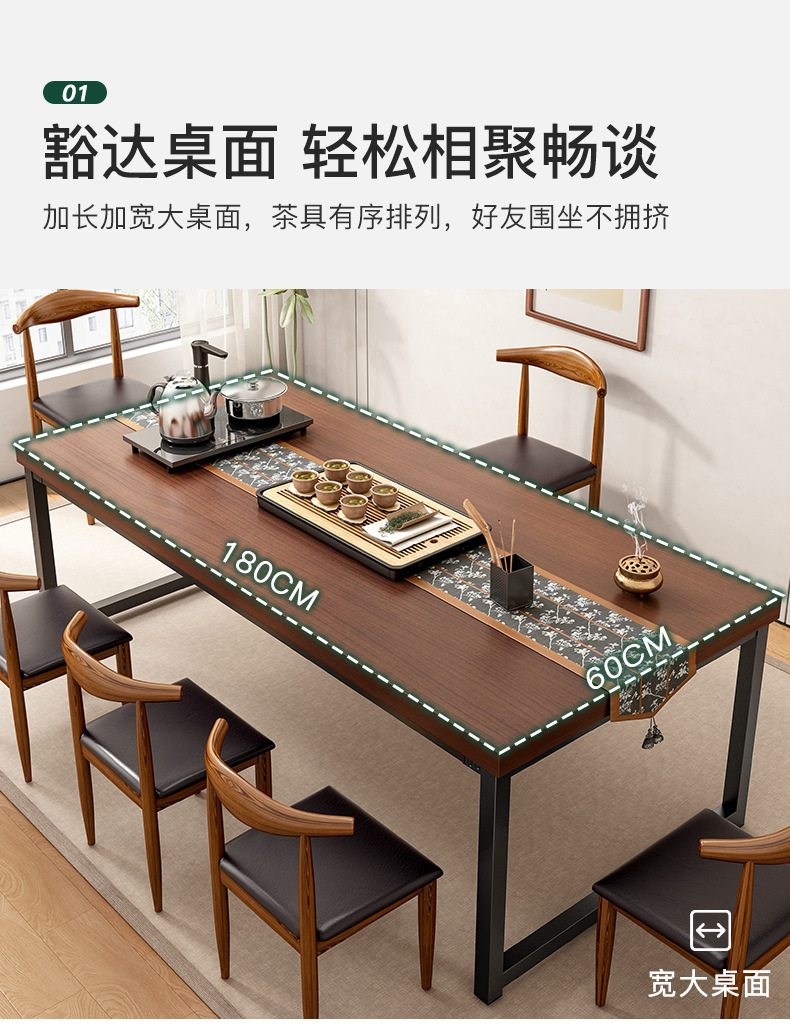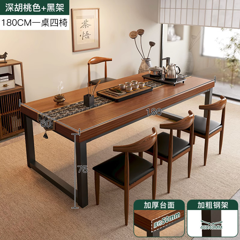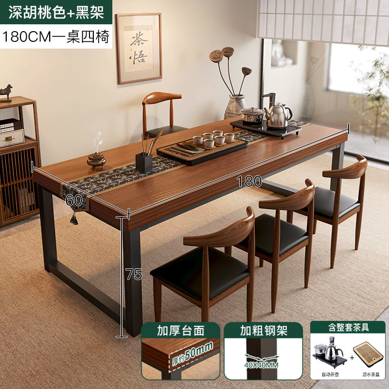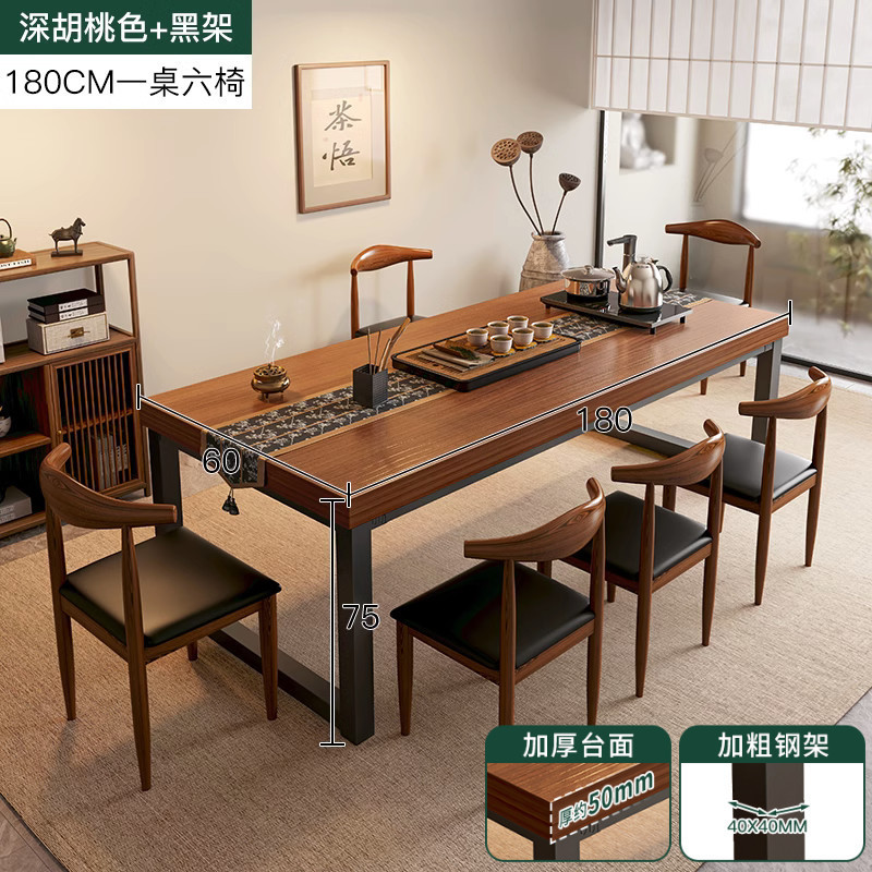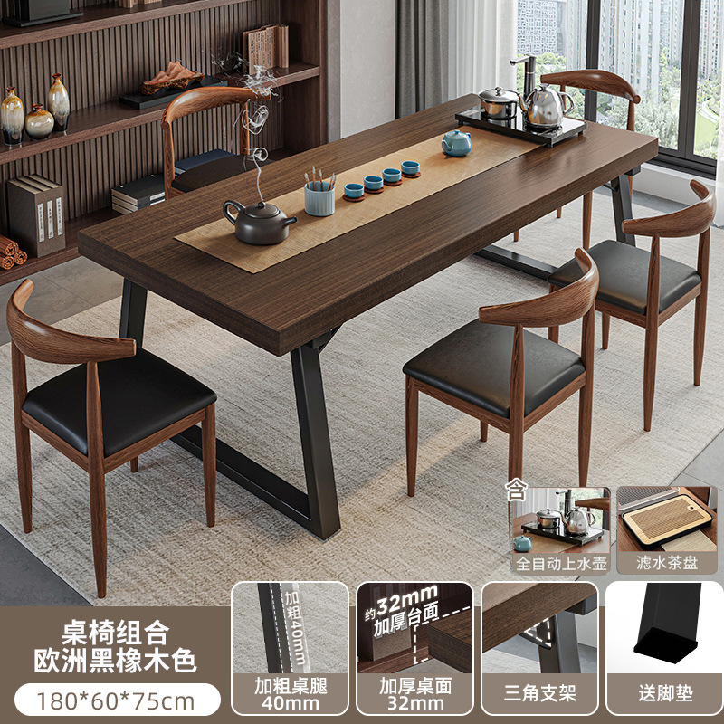 • [5 개의 의자 자동 주전자 대나무 티 트레이 테이블] 유럽 블랙 오크 색상 180*60cm