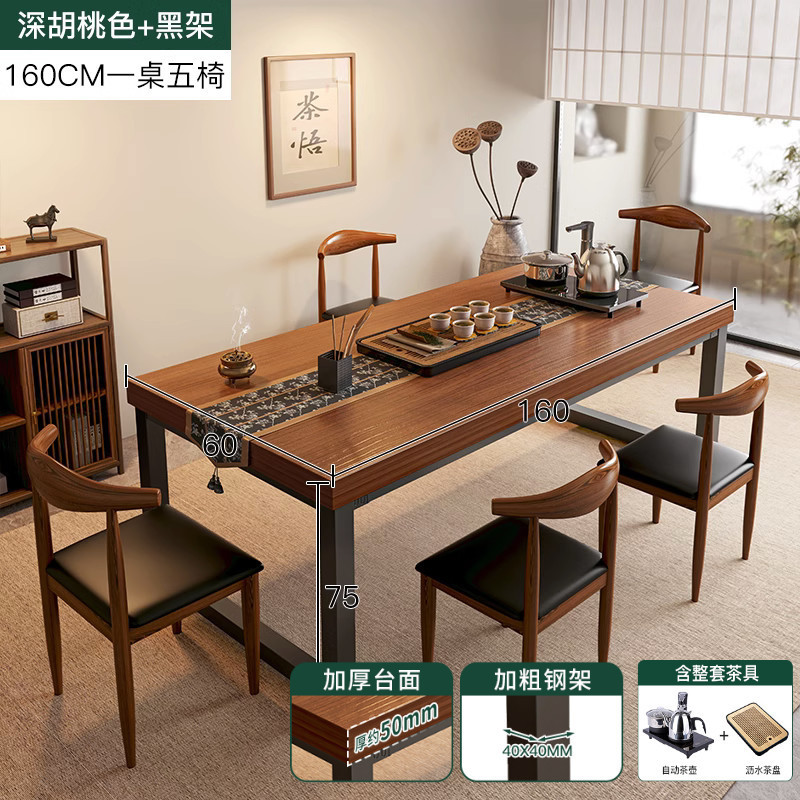 차 테이블과 의자 세트 1 대 1 테이블 5 의자 새로운 중국 스타일의 간단한 대형 보드 테이블 회의 테이블 협상 테이블 차 만들기 테이블 발코니 차 테이블스토어 가기