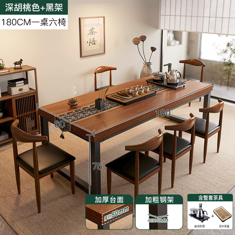 • [1 개의 테이블과 6 개의 의자] 1.8 미터★{자동 주전자 대나무 차 트레이}