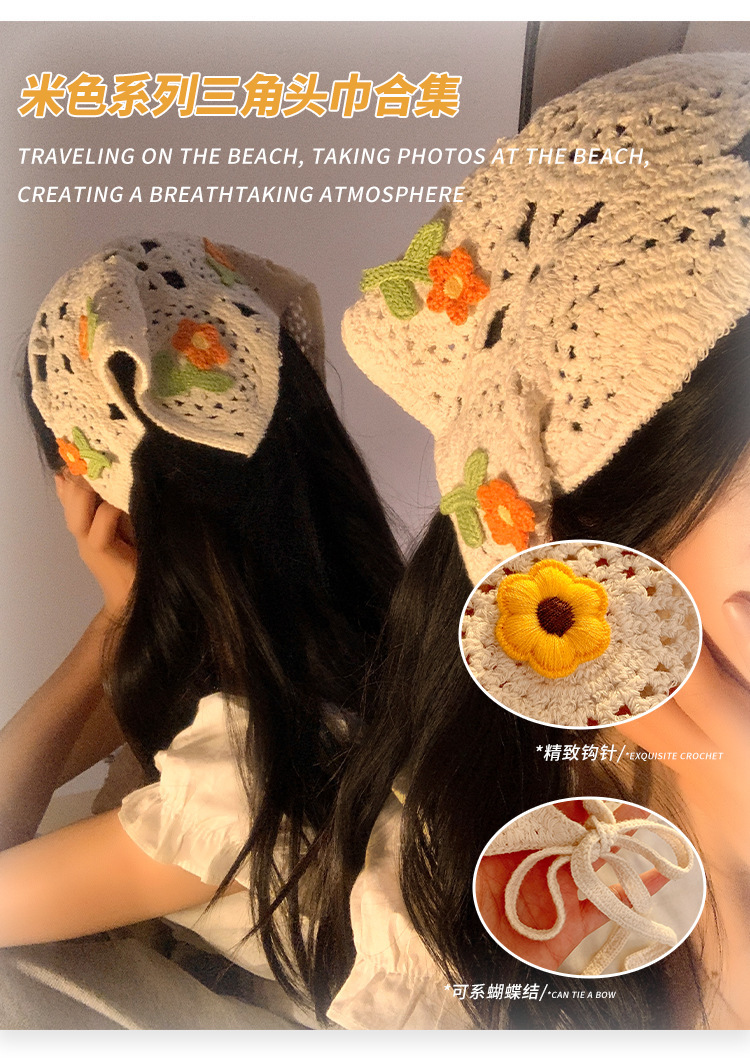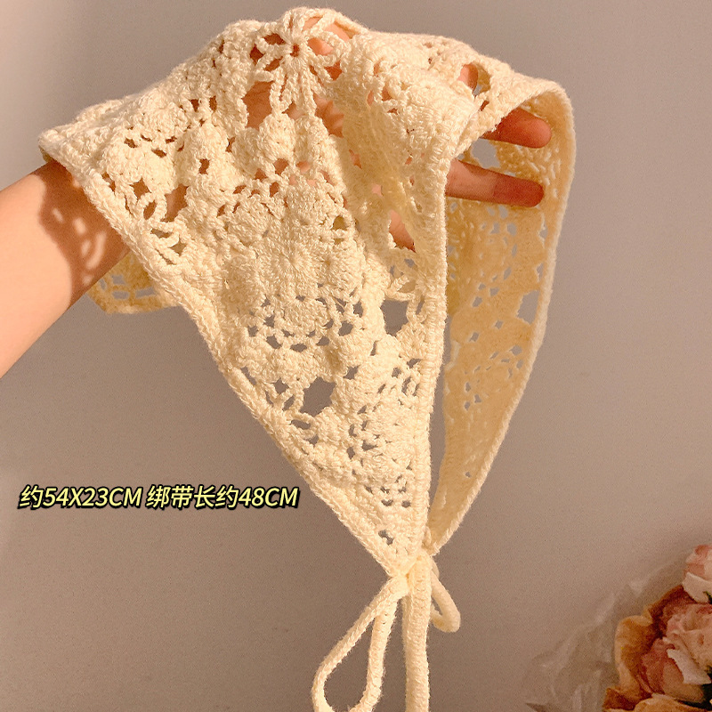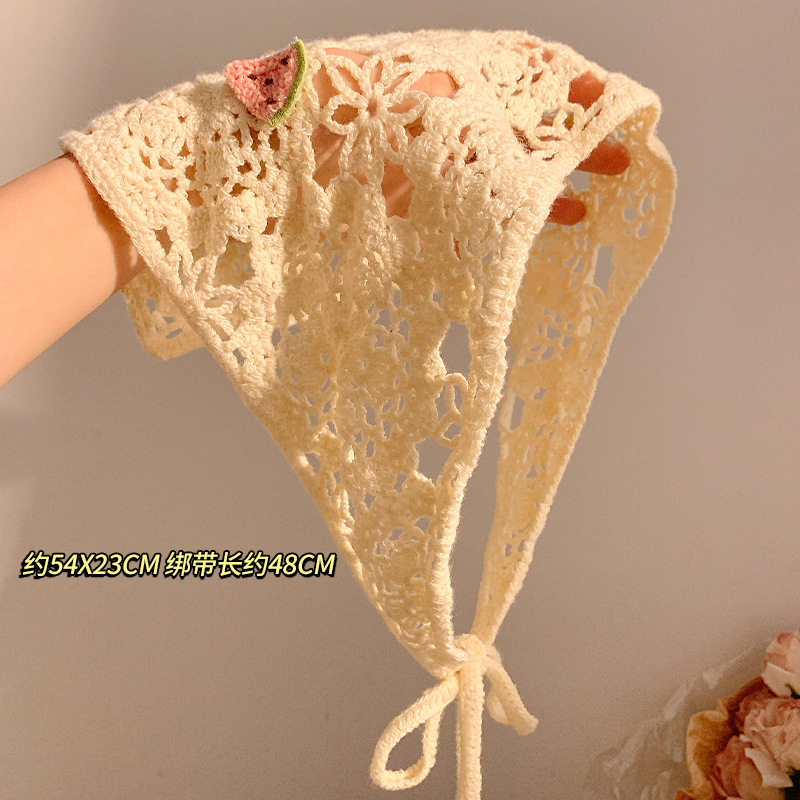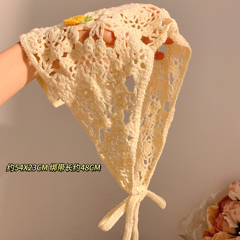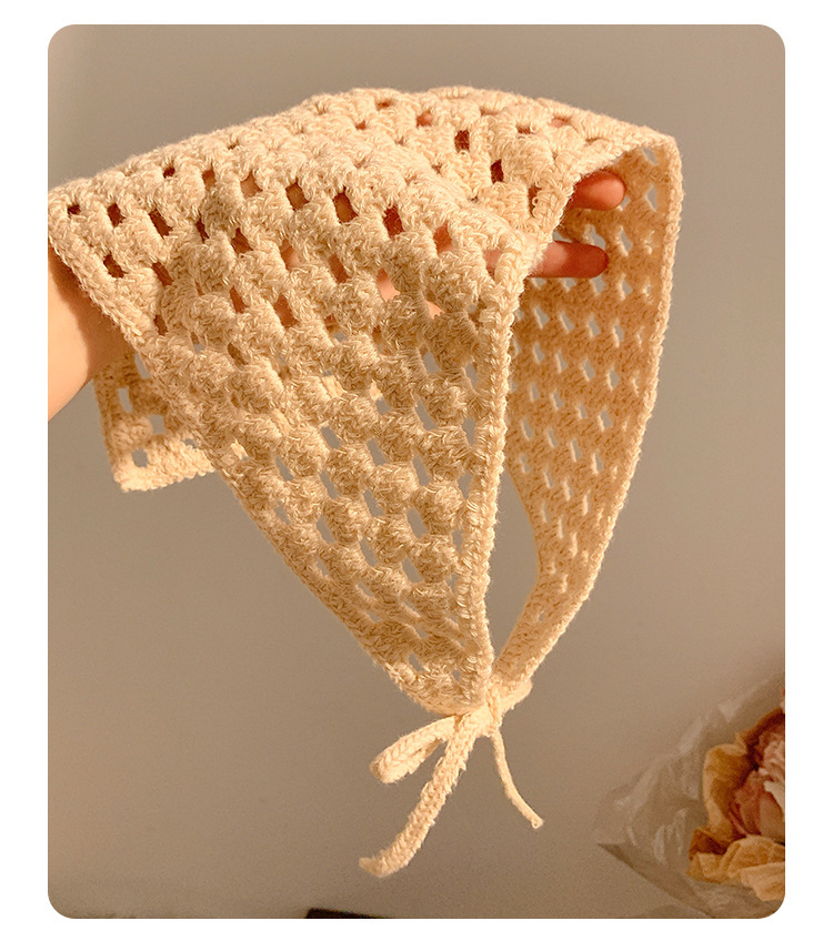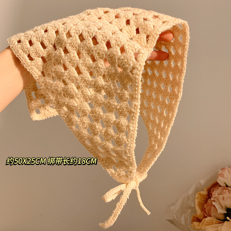 베이지 목가적 인 스타일 니트 터번 삼각형 스카프 여성 발가락 프랑스 스타일 해변 귀여운 헤어 밴드 머리글 2024 새로운 스타일스토어 가기