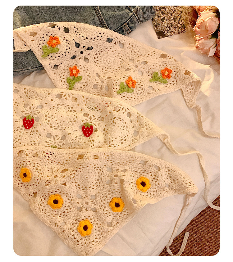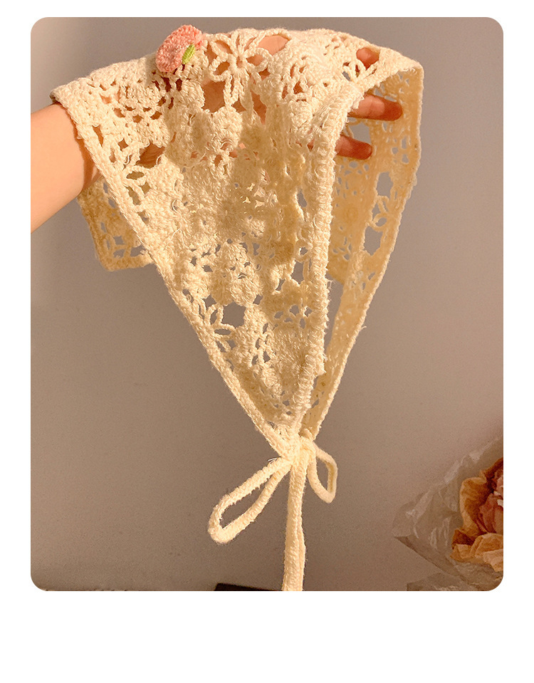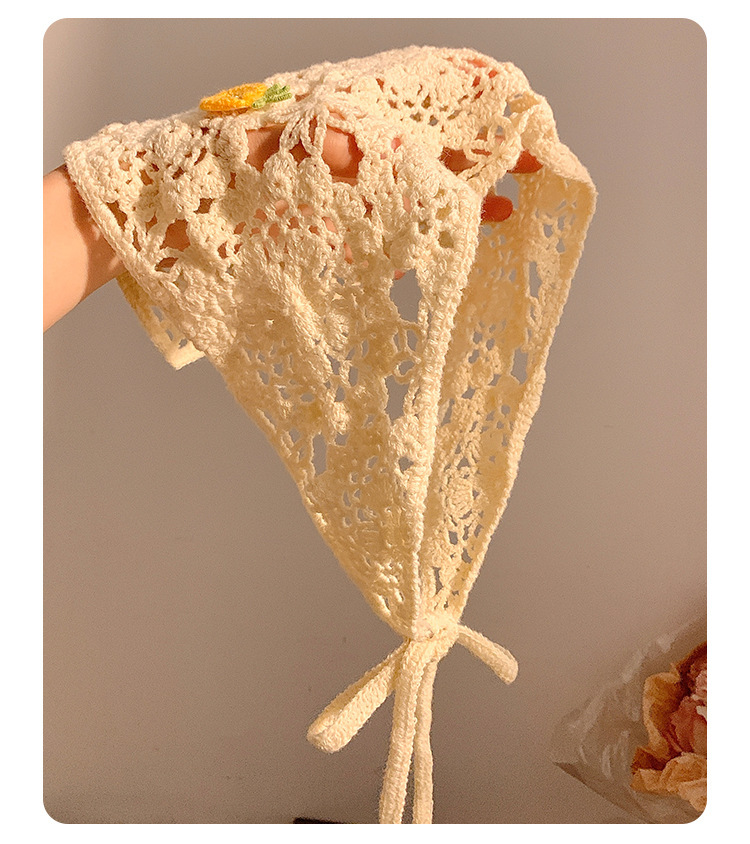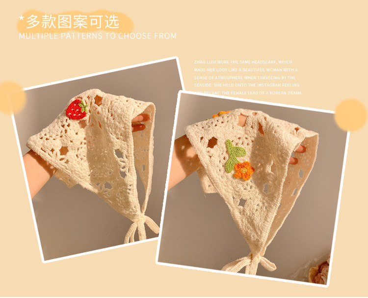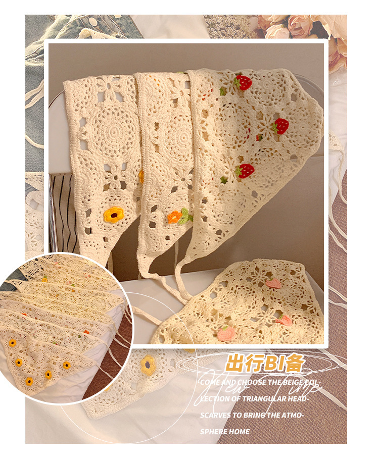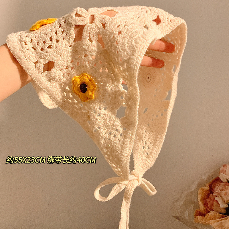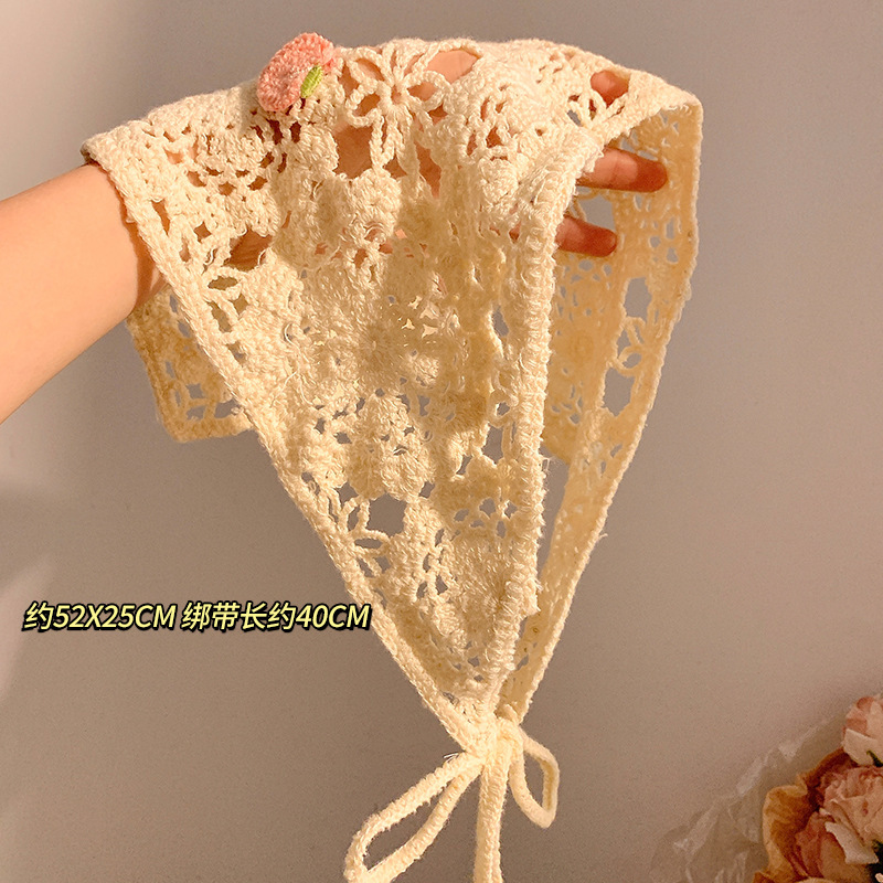 베이지 목가적 인 스타일 니트 터번 삼각형 스카프 여성 발가락 프랑스 스타일 해변 귀여운 헤어 밴드 머리글 2024 새로운 스타일스토어 가기