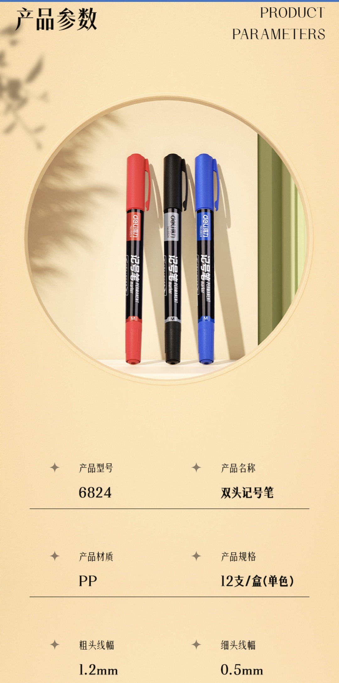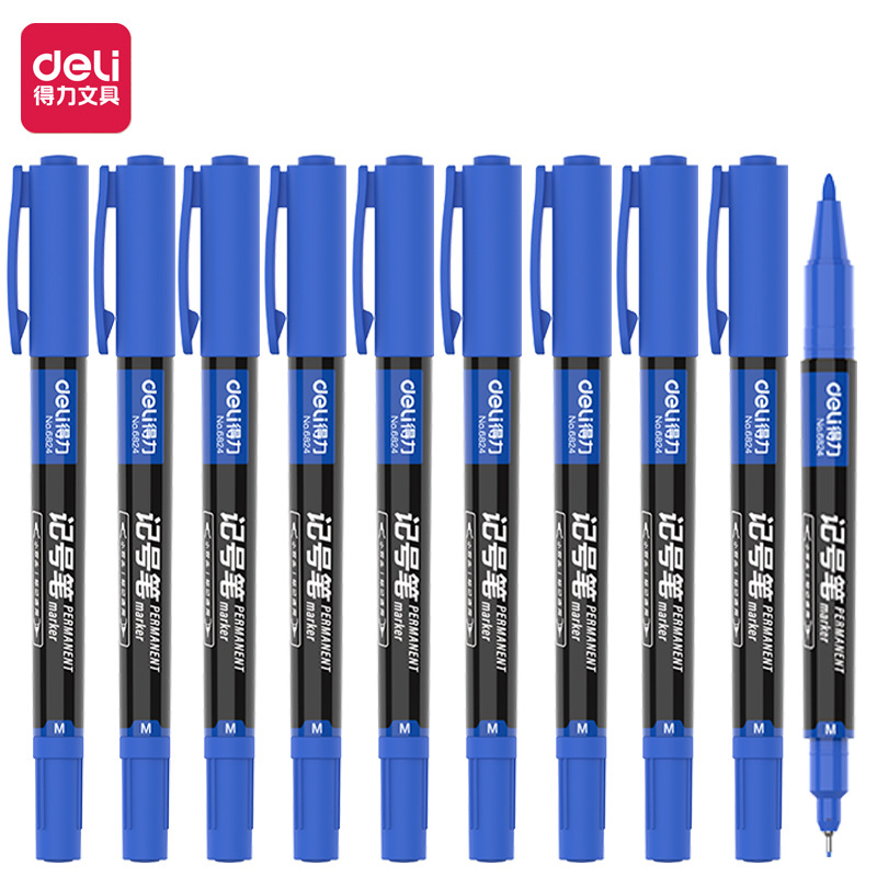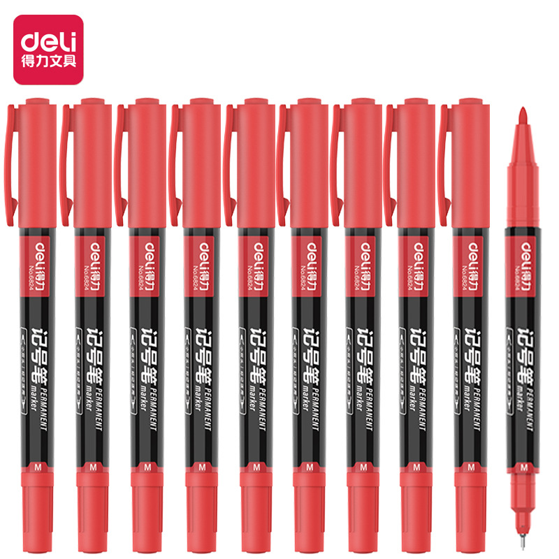 델리 6824 후크 라인 유성 마커 펜 더블 헤드 빠른 건조 방수 초등학교 어린이 그림 미세 헤드 마커 펜