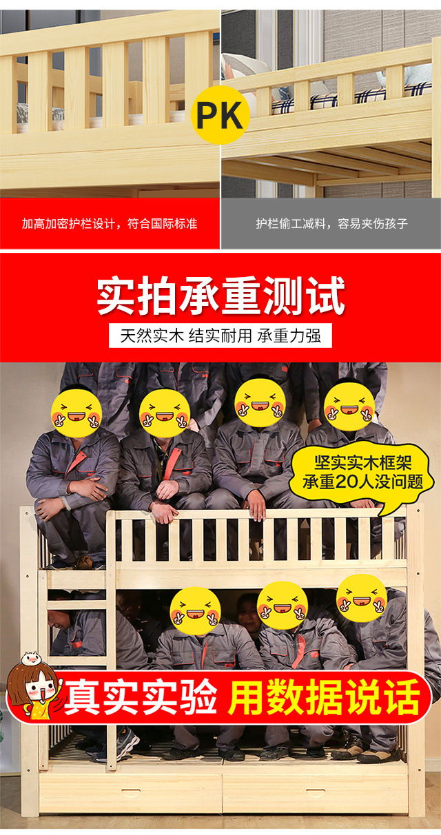 단단한 나무 높고 낮은 침대 어린이 침대 이층 침대 이층 침대 성인 기숙사 침대 2 층 침대 어머니 침대 대외 무역스토어 가기