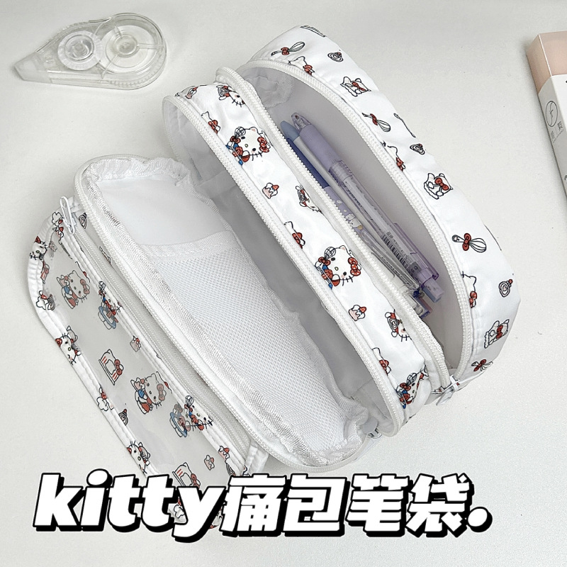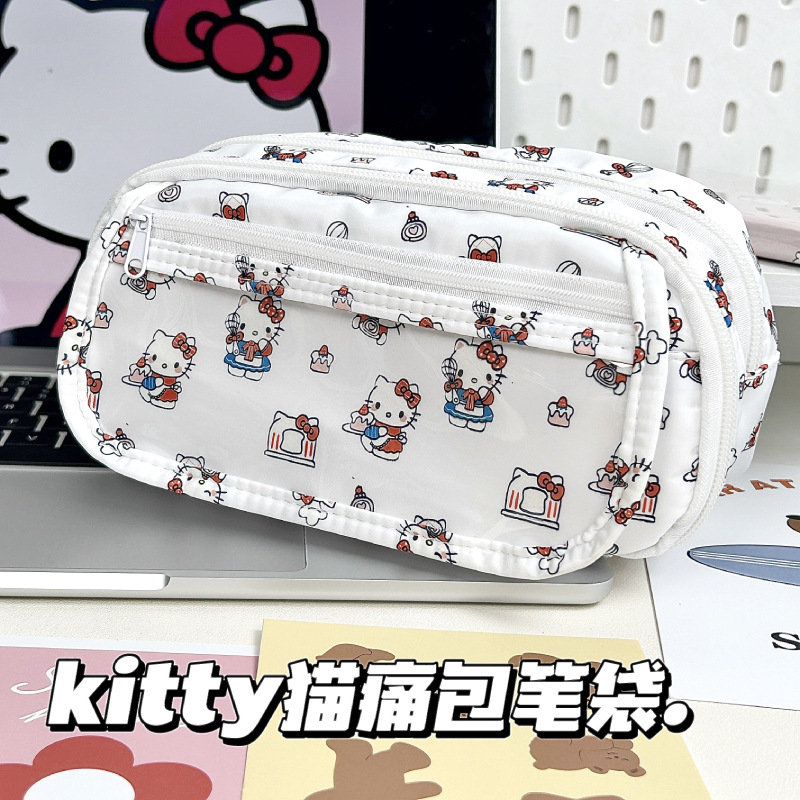 산리오 KT 고양이 통증 가방 연필 케이스 Ins 스타일 작은 높은 색상 가치 헬로 키티 학생 대용량 더러운-저항하는 문구 상자스토어 가기