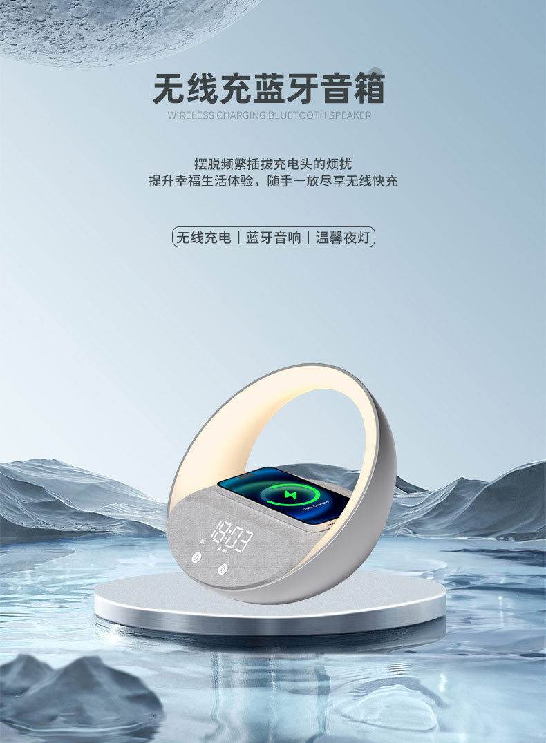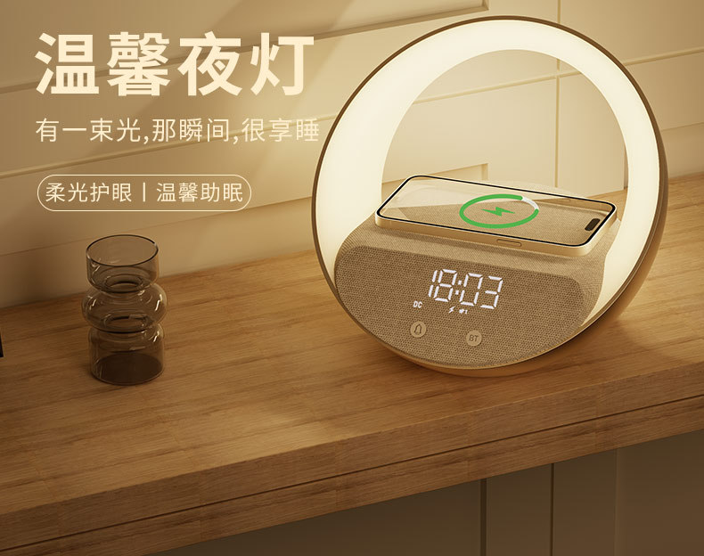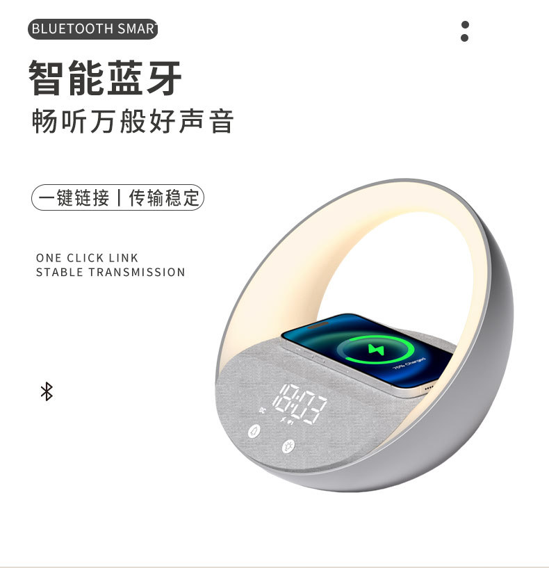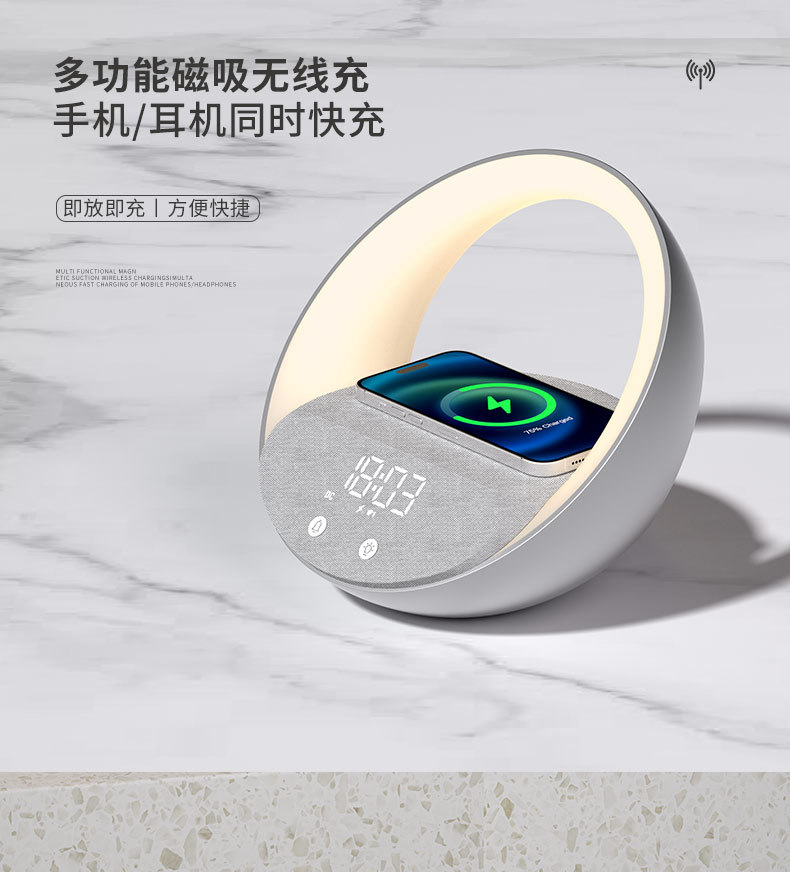 국경 간 새로운 다기능 무선 충전 시계 웨이크 업 라이트 블루투스 스피커 무선 고속 충전 대기 라이트 스피커 도매스토어 가기