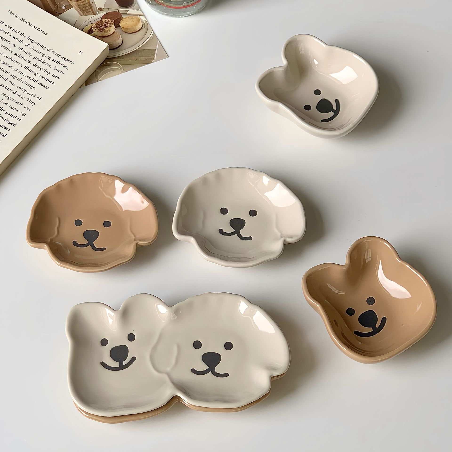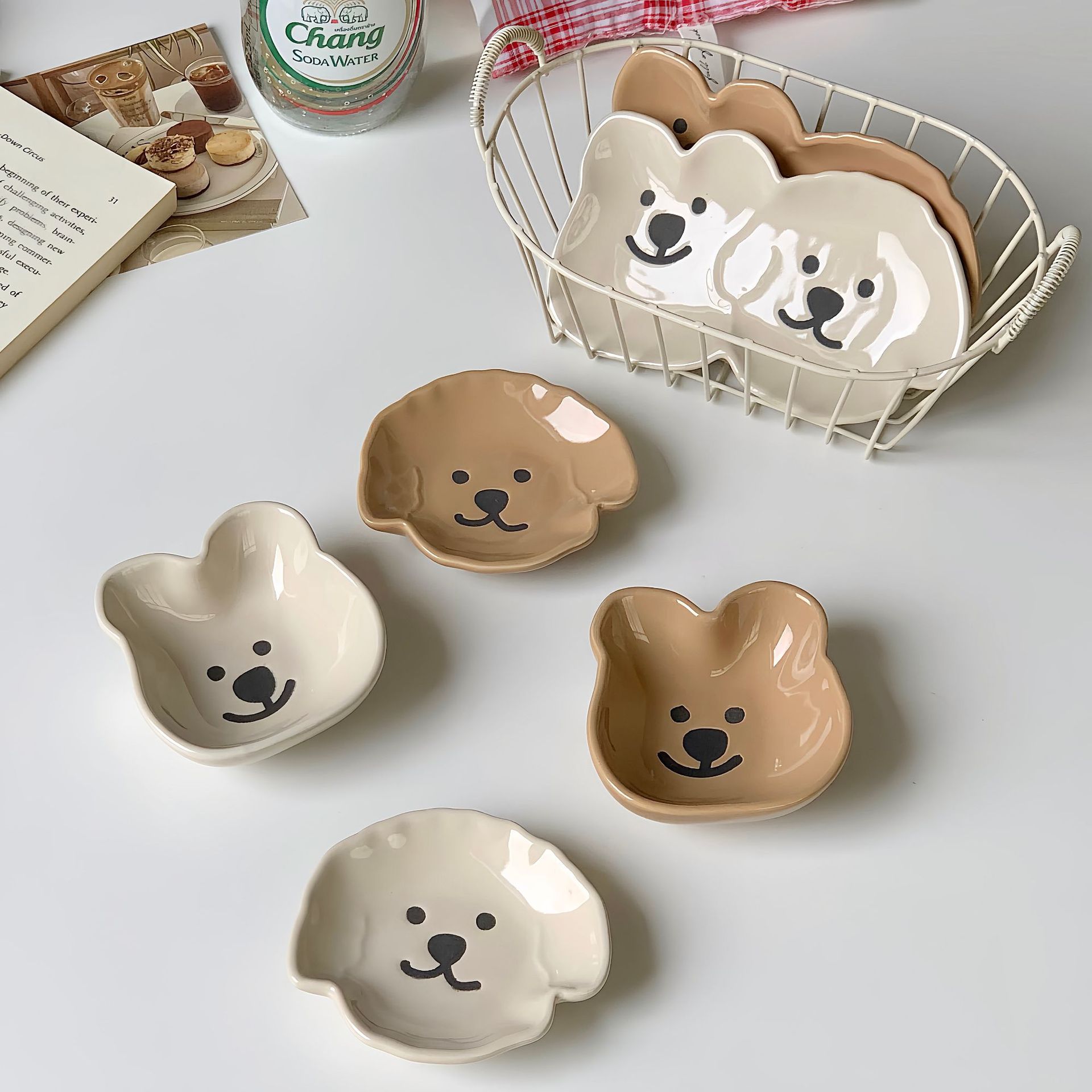 Ins 스타일 귀여운 강아지 디자인 세라믹 접시 창조적 인 가정용 간장 접시 스몰 사이즈 조미료 접시 뜨거운 냄비 접시