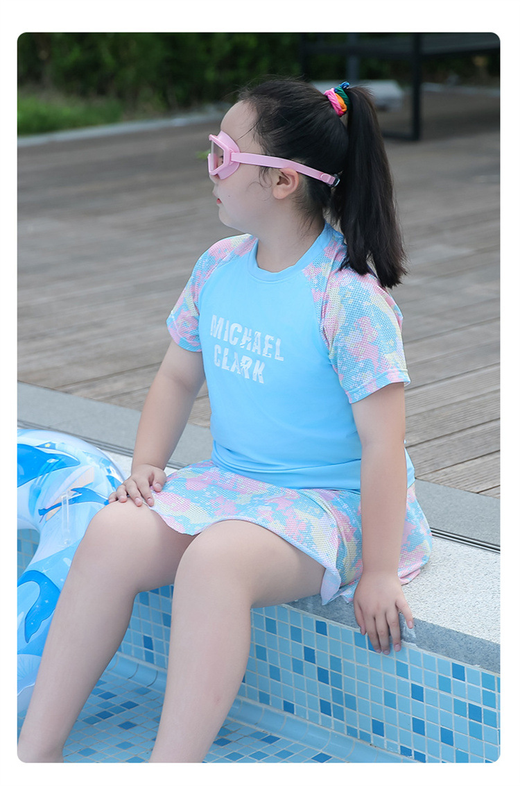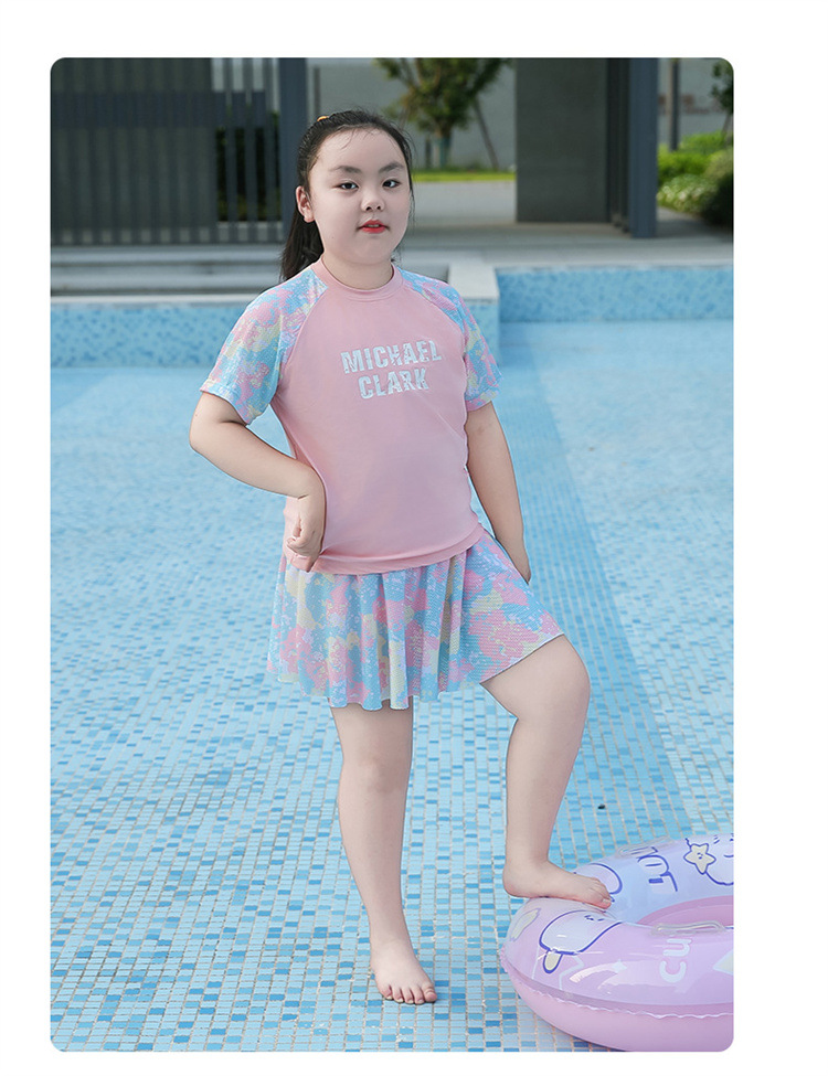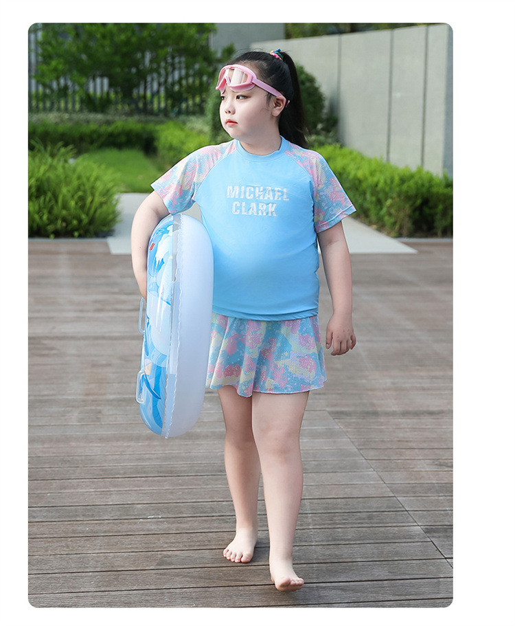 통통한 소녀 수영복 플러스 사이즈 분할 2024 새로운 소녀 빠른 건조 선 스크린 수영복 대형 어린이 스커트 바지 세트