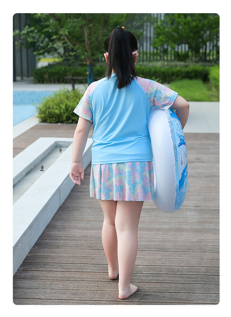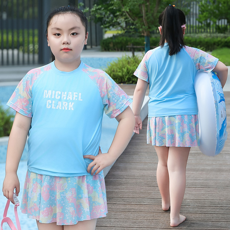 통통한 소녀 수영복 플러스 사이즈 분할 2024 새로운 소녀 빠른 건조 선 스크린 수영복 대형 어린이 스커트 바지 세트스토어 가기
