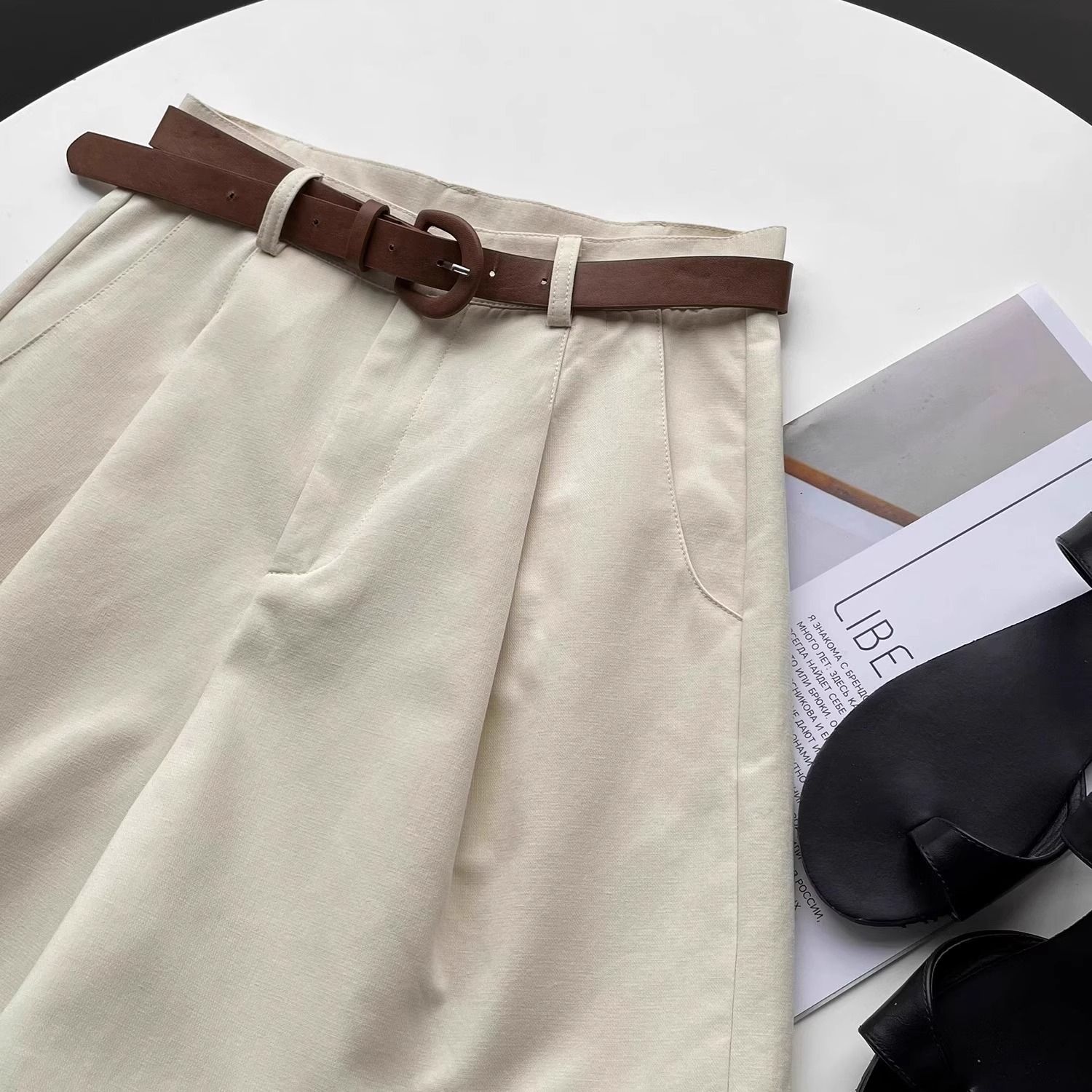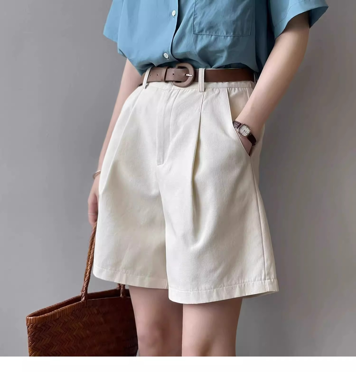 여성용 정장 반바지 여름 5부 바지 2025 신상 캐주얼 바지 하이웨이스트 슬림 팬츠 루즈한 에이라인 와이드 팬츠