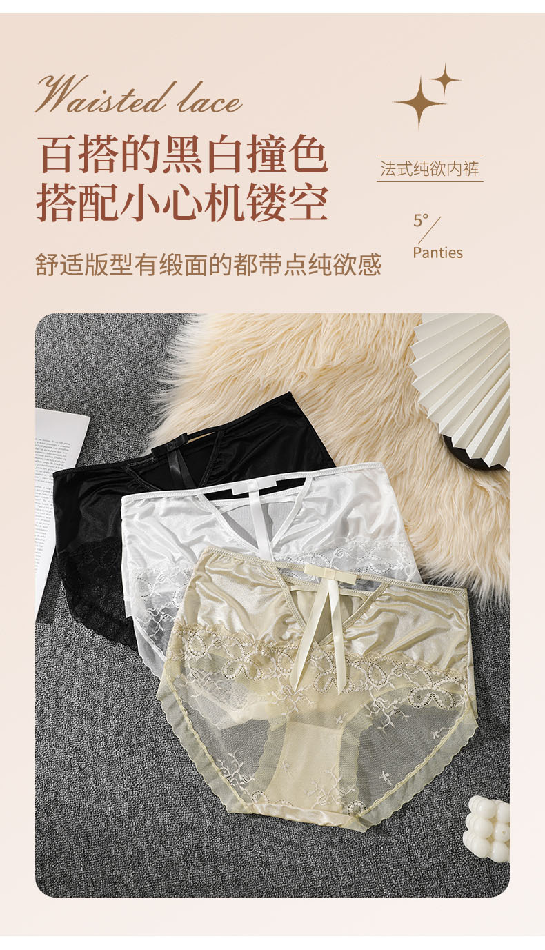 여성용 코튼 크로 치 미드 웨이스트 레이스 통기성 섹시한 소녀의 원활한 삼각형 반바지 편안한 할로우 아웃 바지