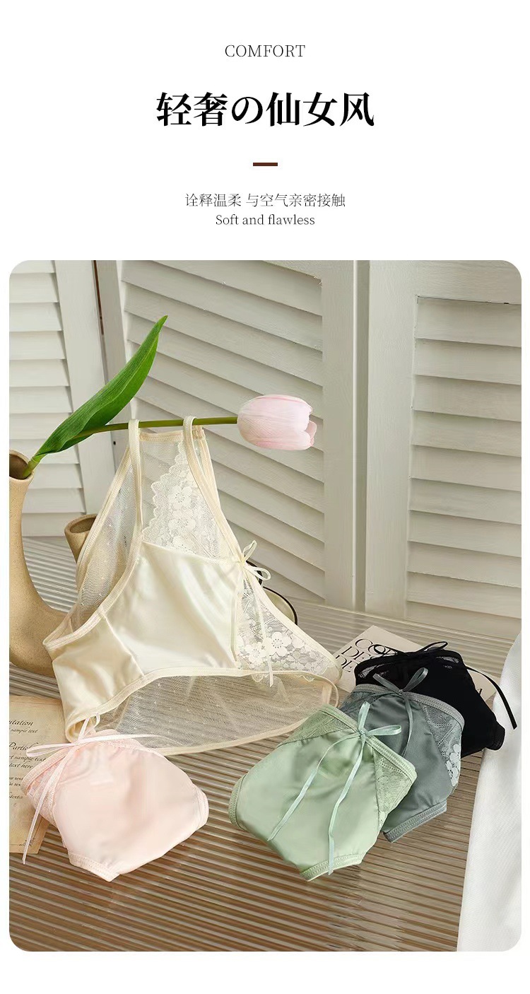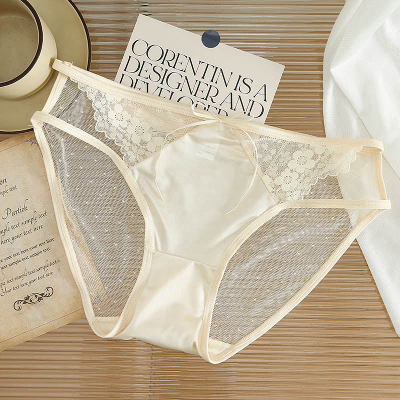 가벼운 럭셔리 섹시한 얇은 레이스 속옷 자수 중공 메쉬 높은 탄성 편안한 멀 베리 실크 크로트 여성 브리프