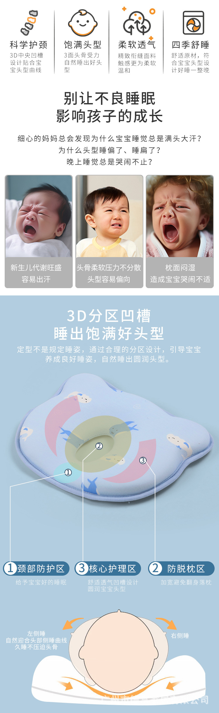 아기 모양 베개, 둥근 머리 수면, 신생아 편향 방지 머리 베개, 아기 머리 모양 교정, 만화 곰 베개 도매