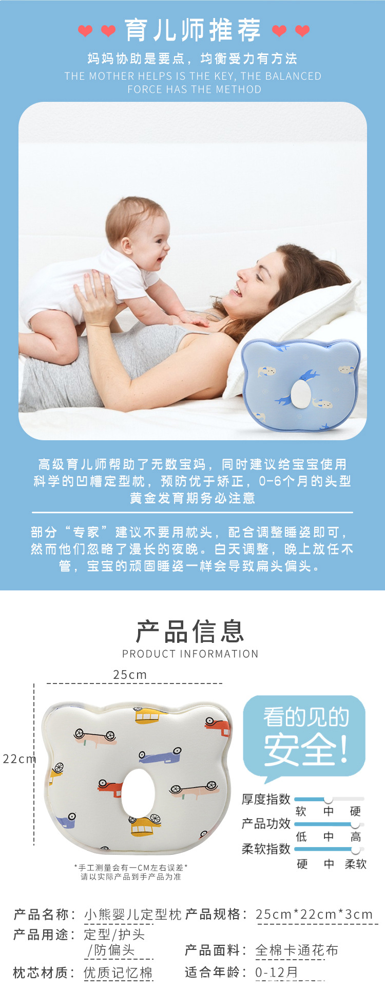 아기 모양 베개, 둥근 머리 수면, 신생아 편향 방지 머리 베개, 아기 머리 모양 교정, 만화 곰 베개 도매스토어 가기