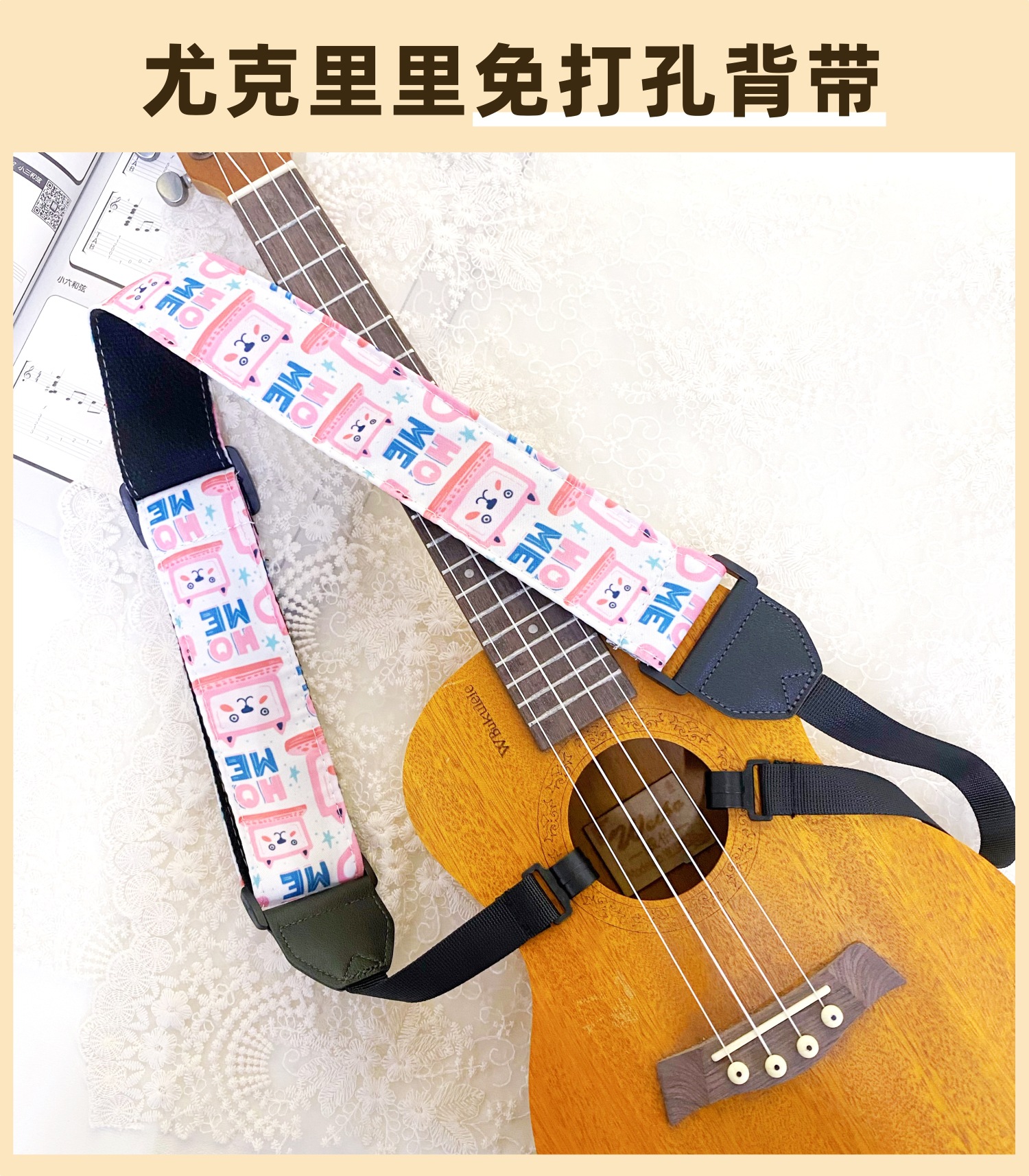 못이 없는 우쿨렐레 스트랩, 크로스바디, 펀치 없는 기타 스트랩, 어린이 및 성인용 우쿨렐레 스트랩, 어깨 스트랩