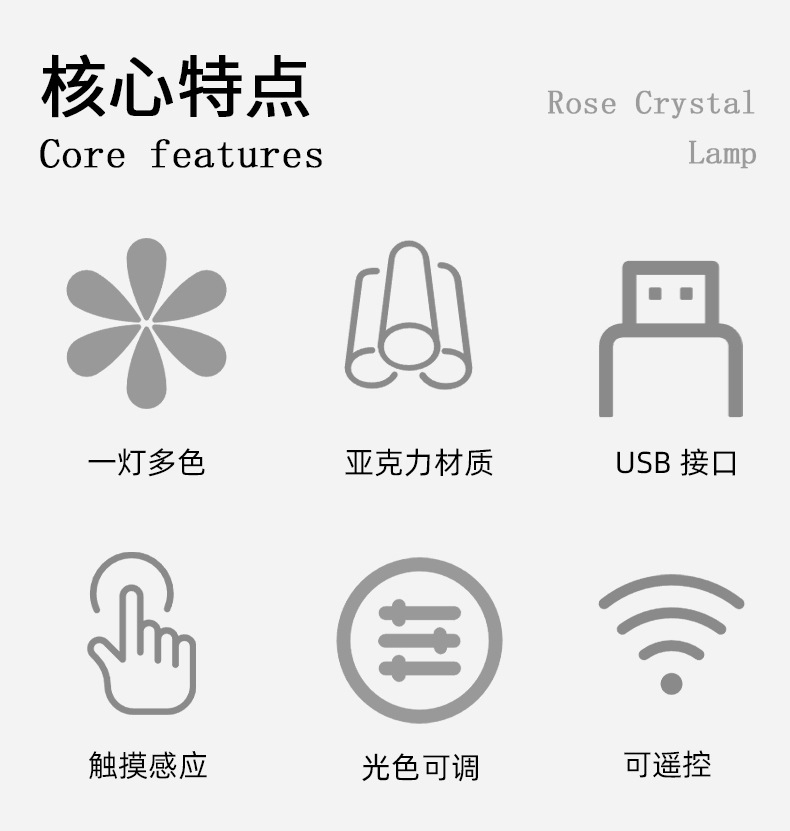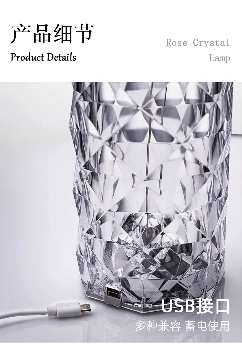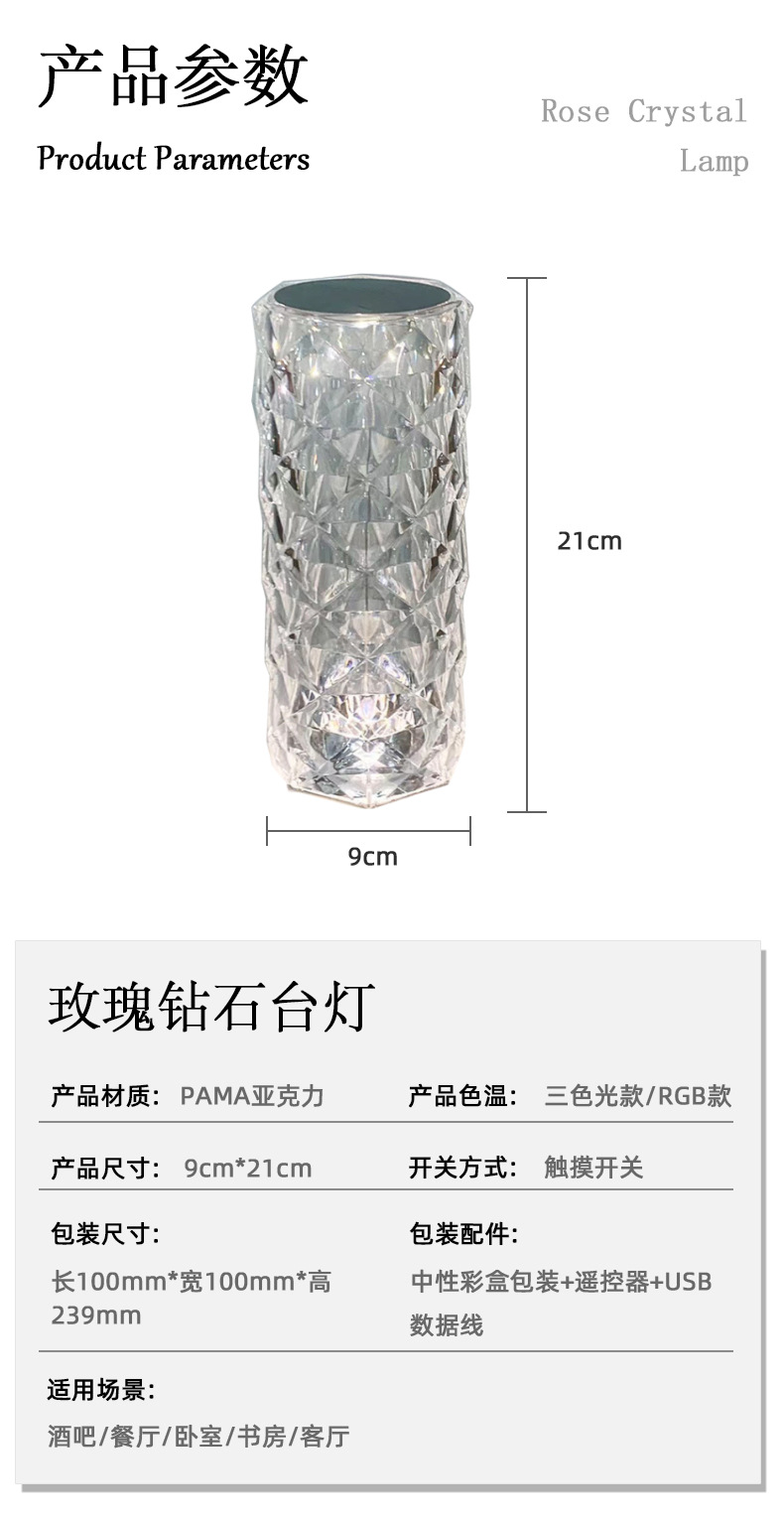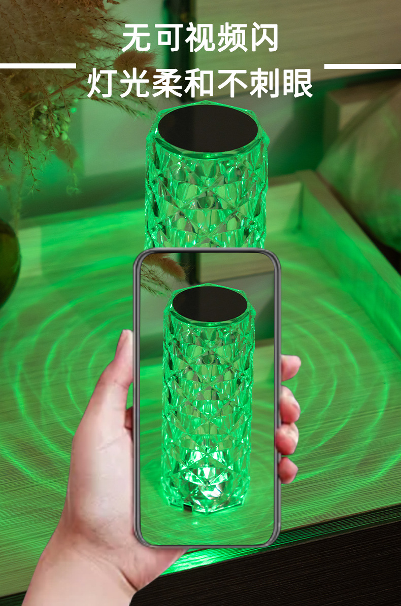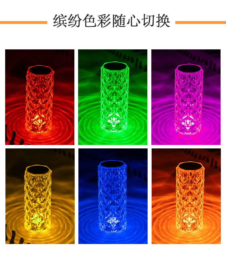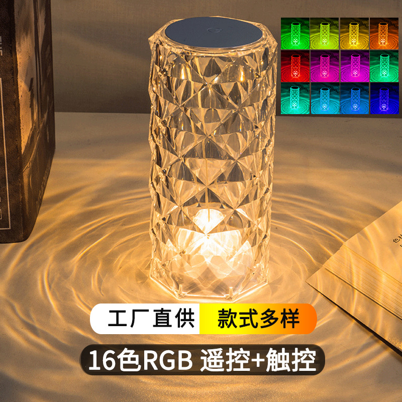 국경 간 창조적 인 rgb 장미 분위기 램프 침실 장식 크리스탈 테이블 램프 충전 터치 led 야간 조명
