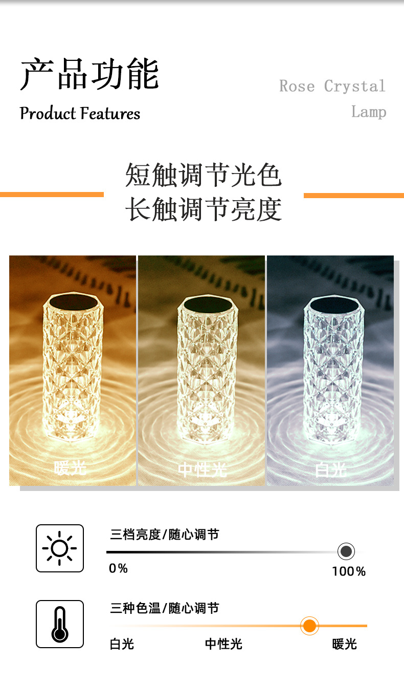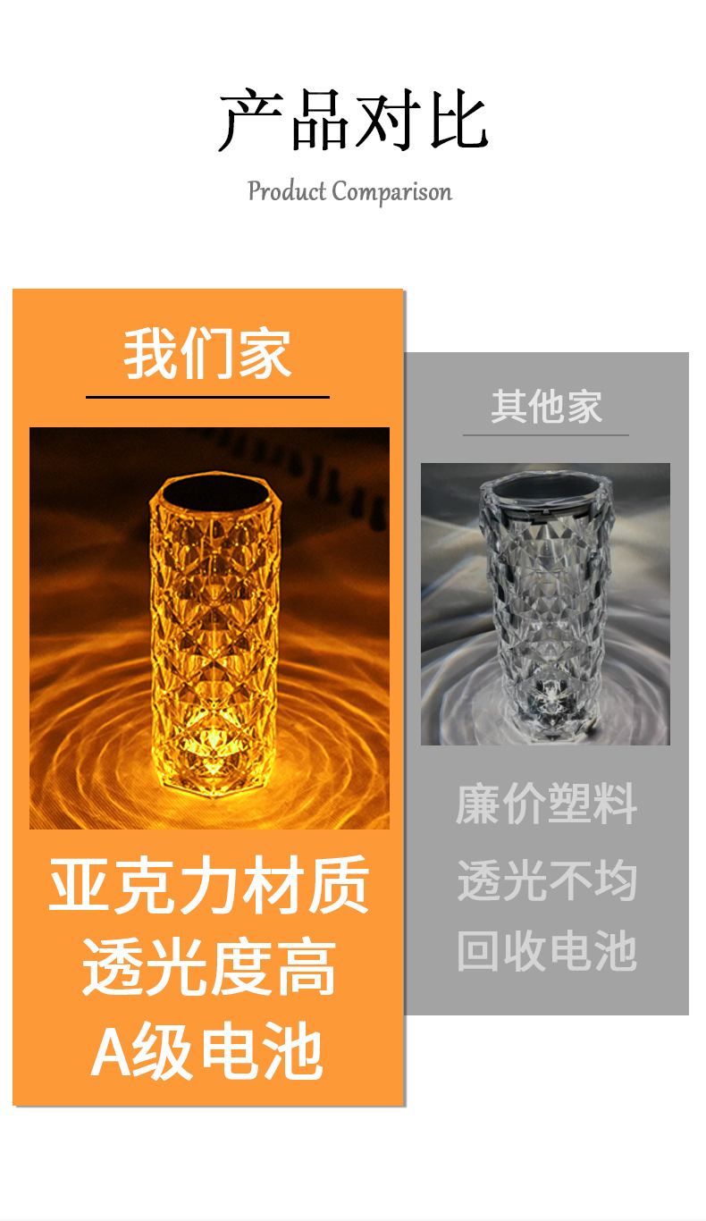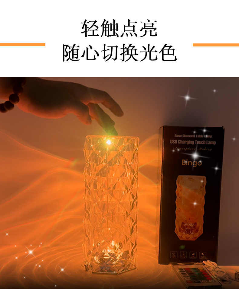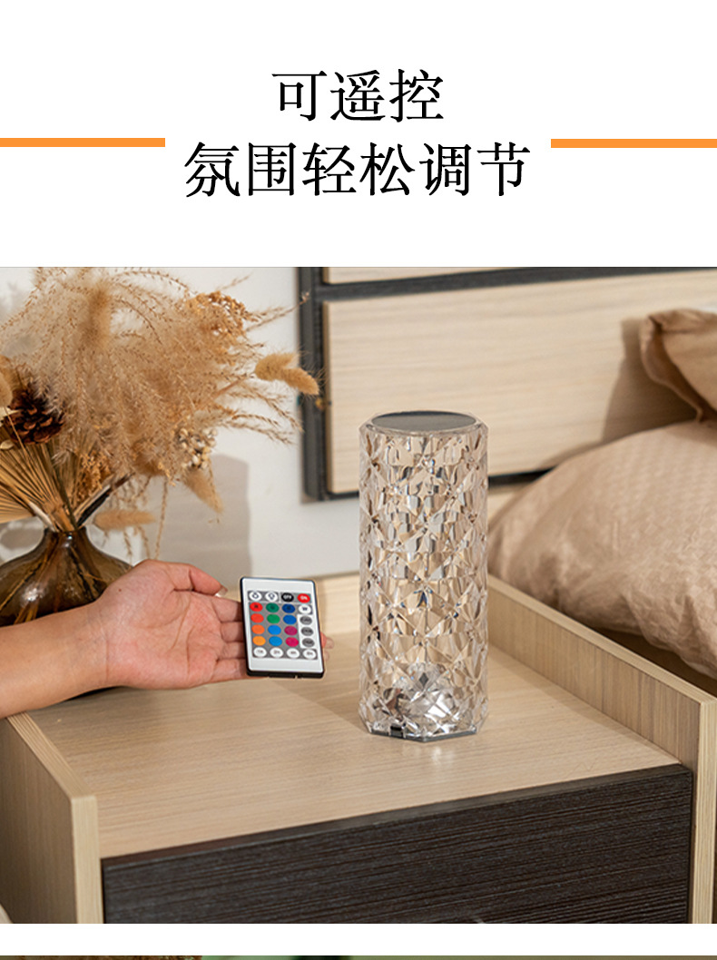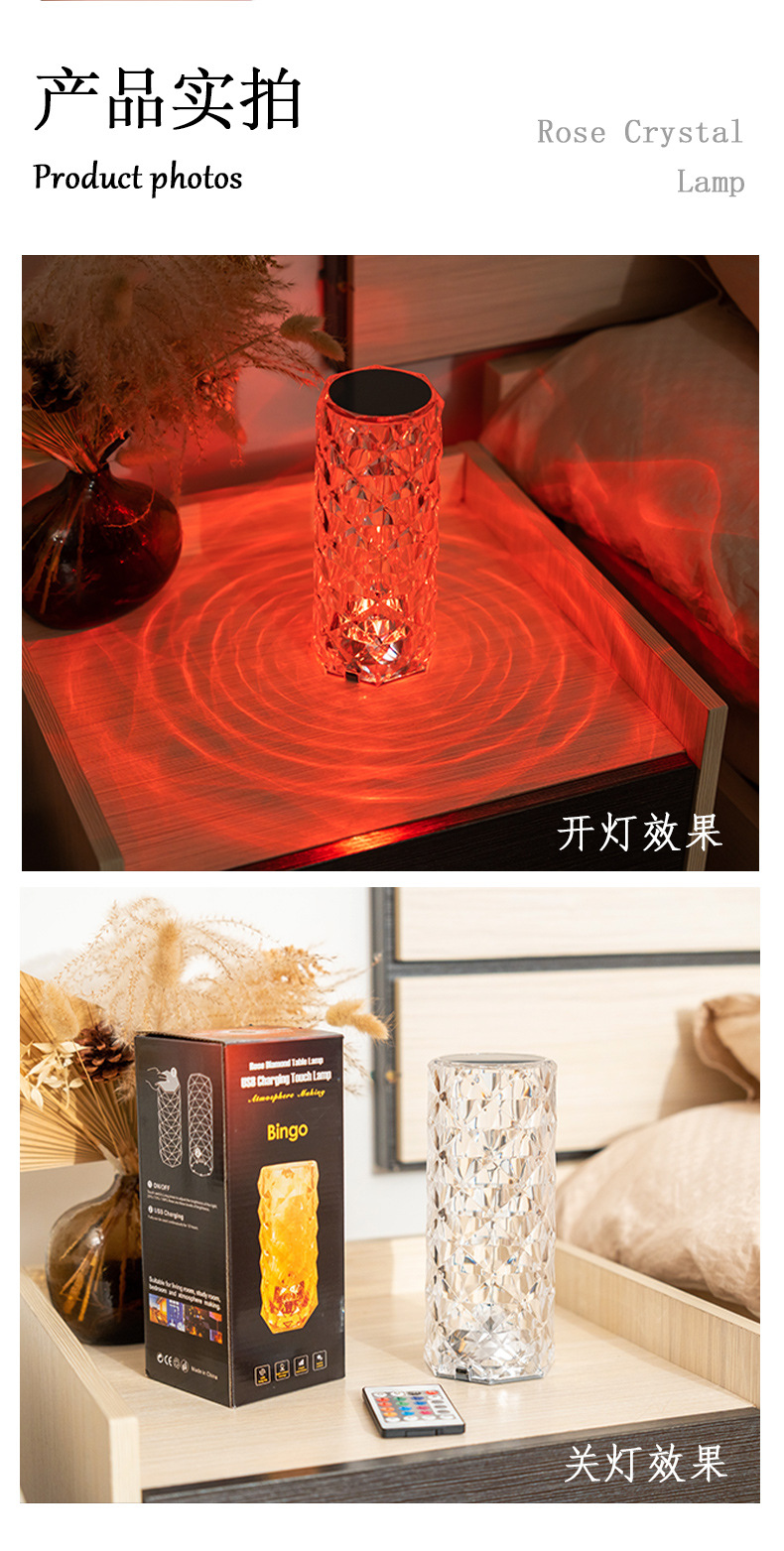 국경 간 창조적 인 rgb 장미 분위기 램프 침실 장식 크리스탈 테이블 램프 충전 터치 led 야간 조명스토어 가기