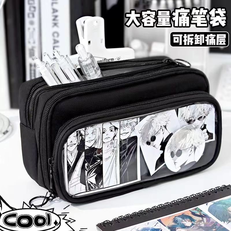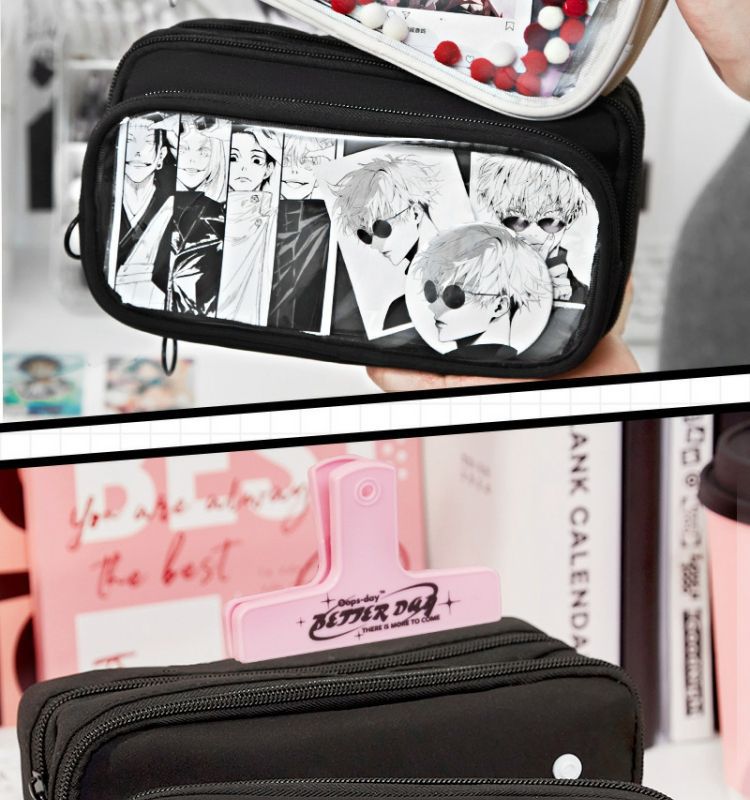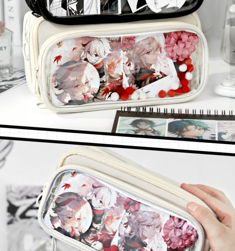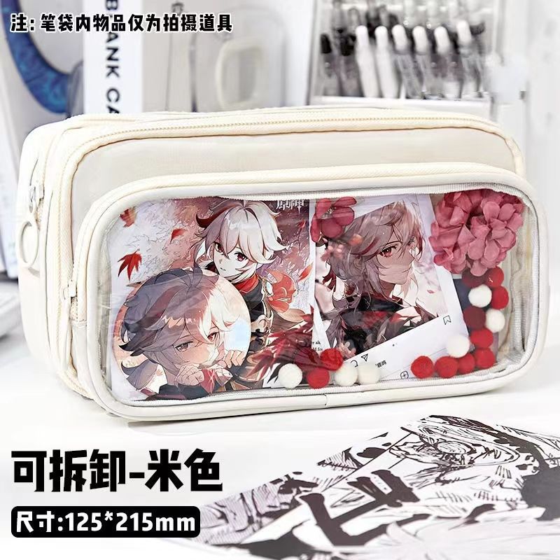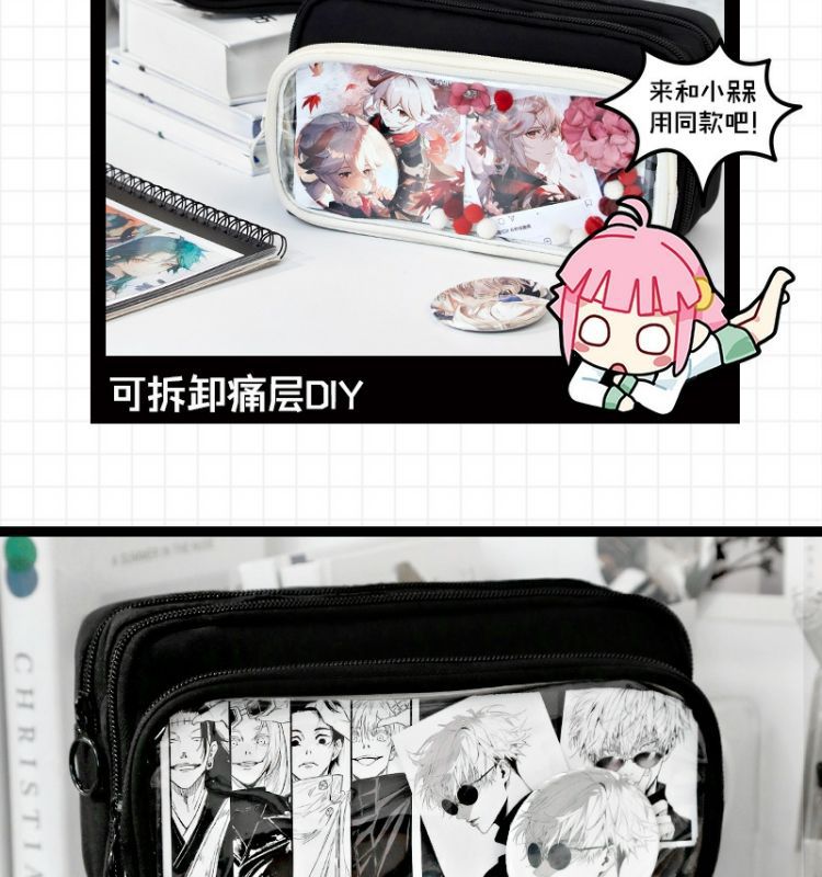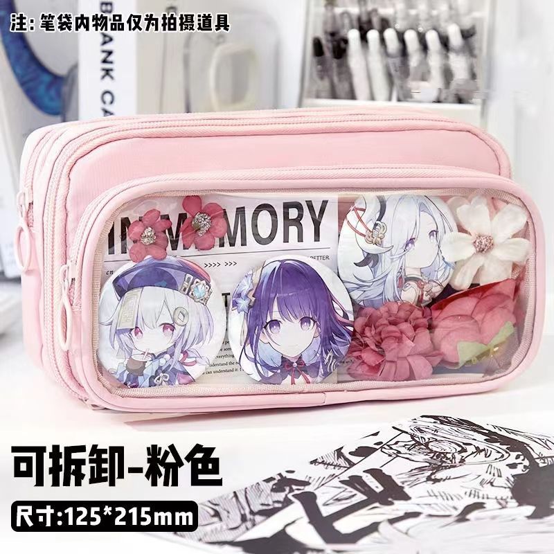 이동식 통증 층! 통증 연필 가방 대용량 투명한 2 차 요소 바람 펌핑 통증 가방 문구 가방 작은 음식 Diy