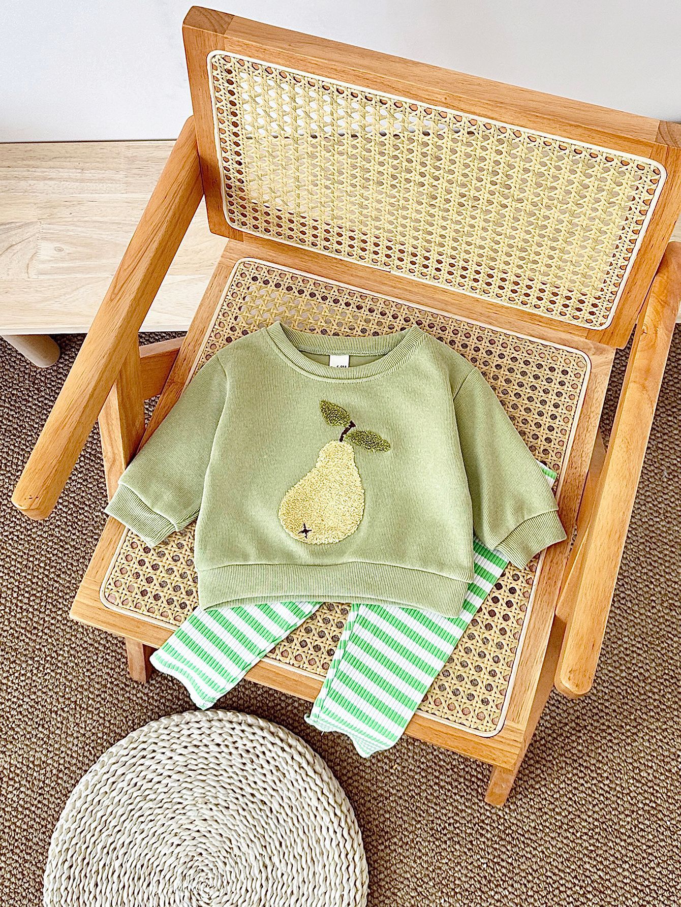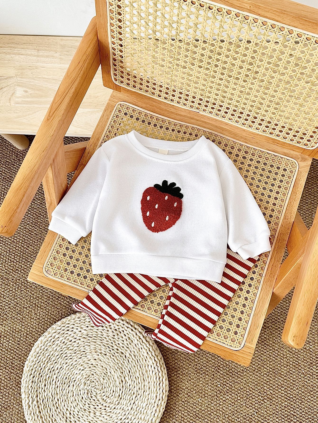 한국식 봄과 가을 신생아 과일 자수 아기 긴팔 니트 바지 투피스 어린이 아기 세트 국경