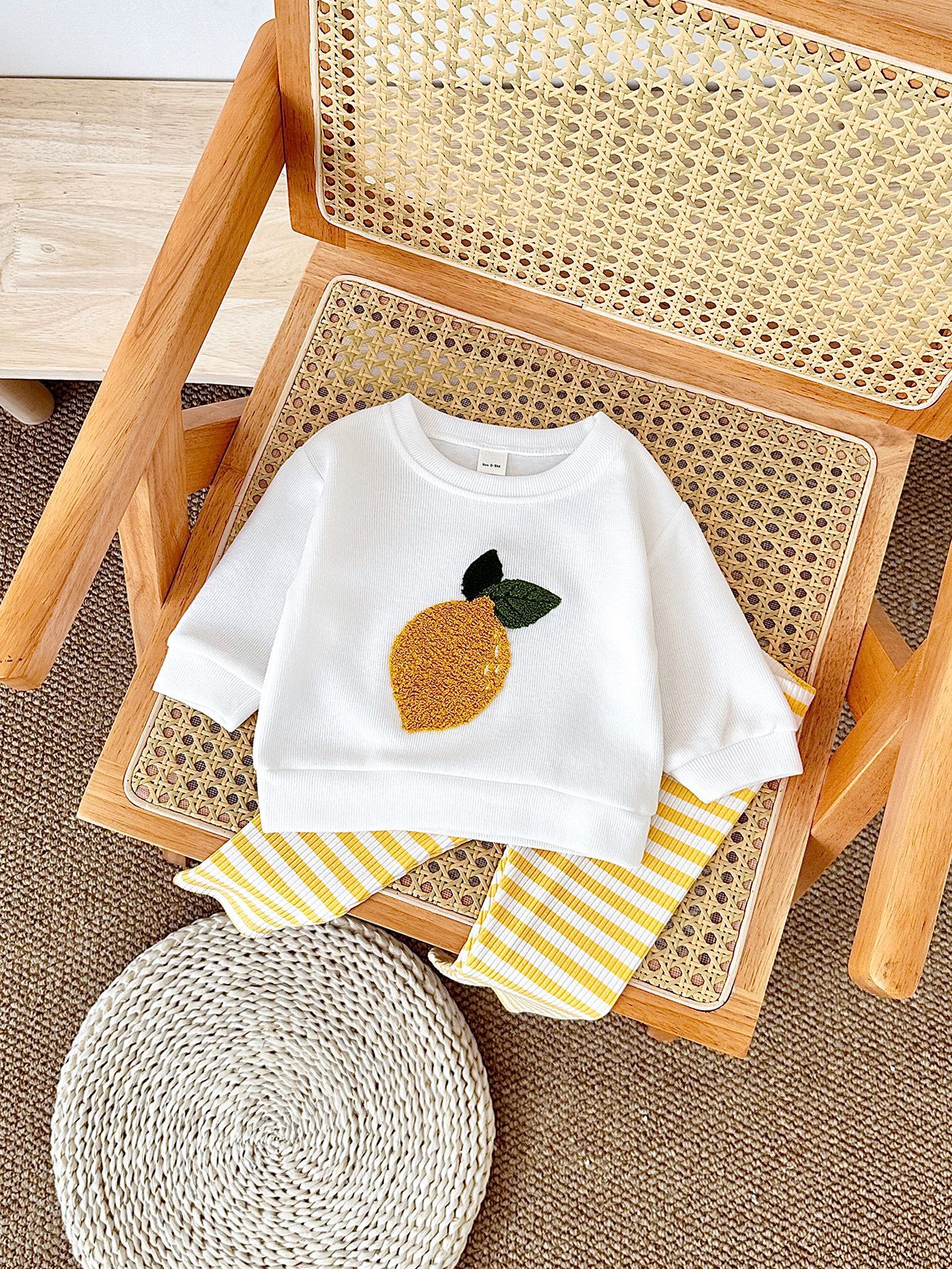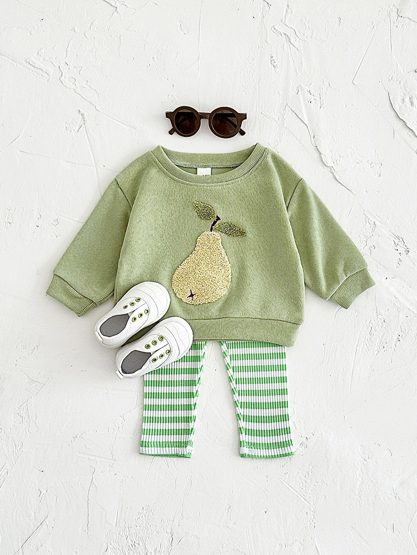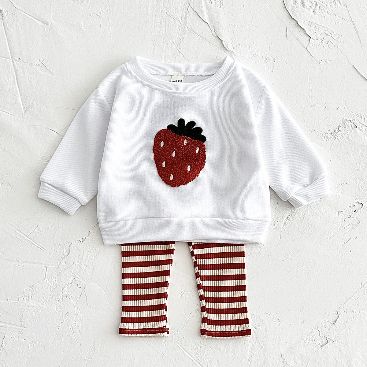 한국식 봄과 가을 신생아 과일 자수 아기 긴팔 니트 바지 투피스 어린이 아기 세트 국경스토어 가기