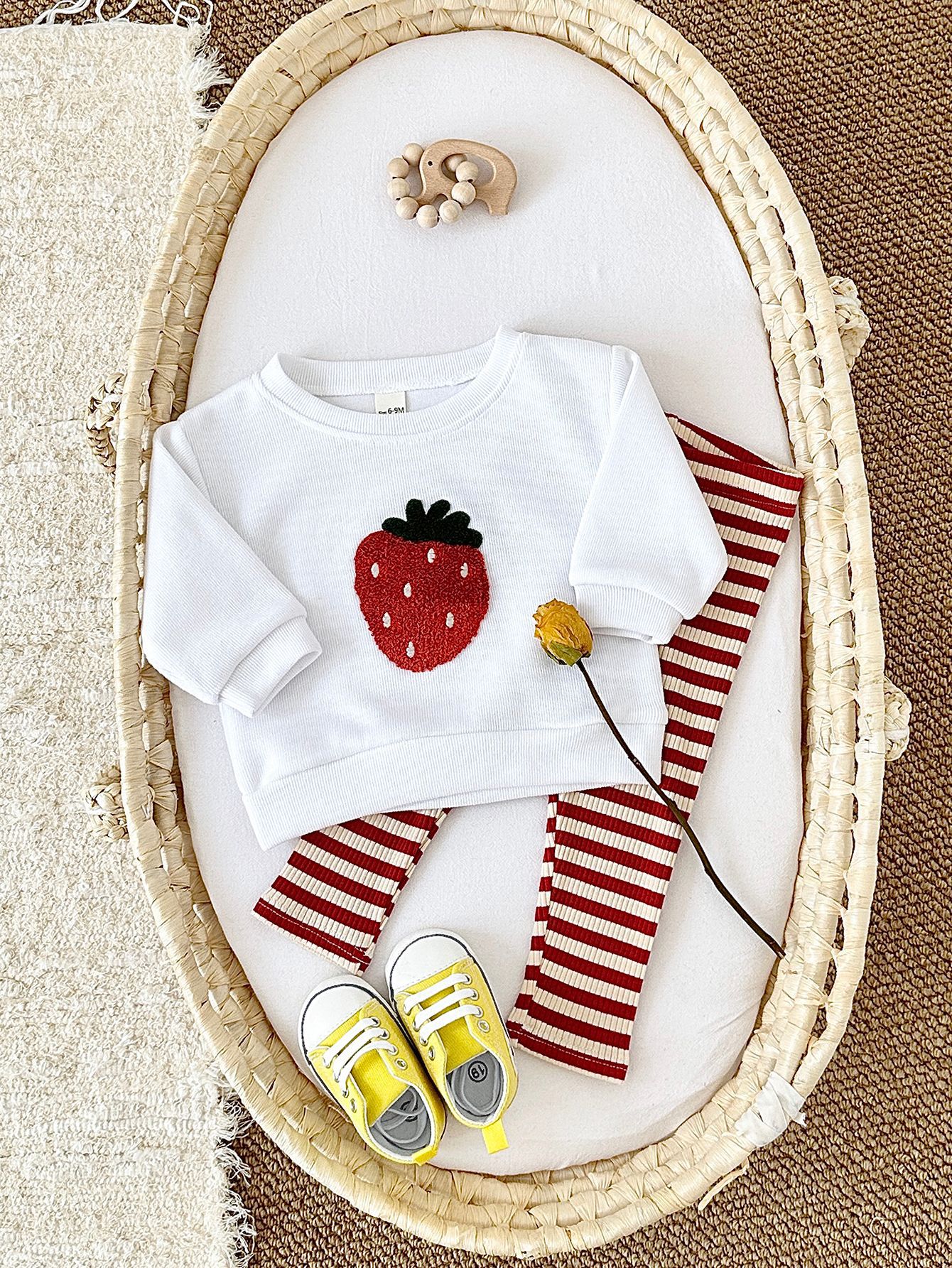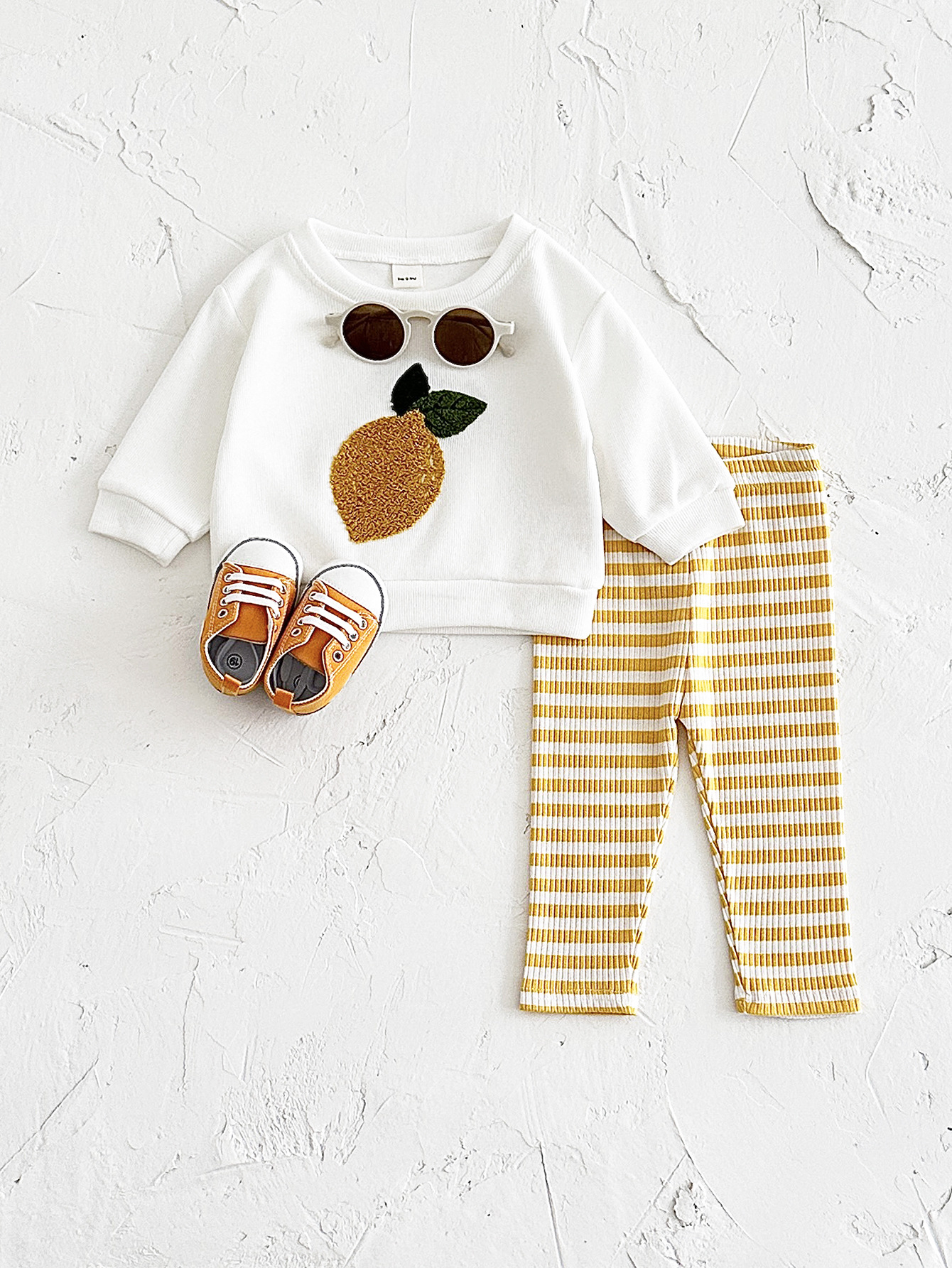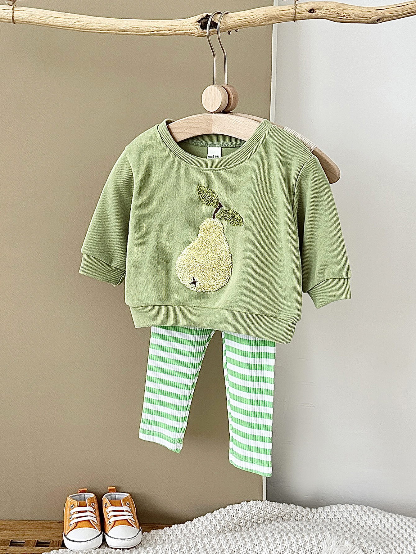 한국식 봄과 가을 신생아 과일 자수 아기 긴팔 니트 바지 투피스 어린이 아기 세트 국경스토어 가기