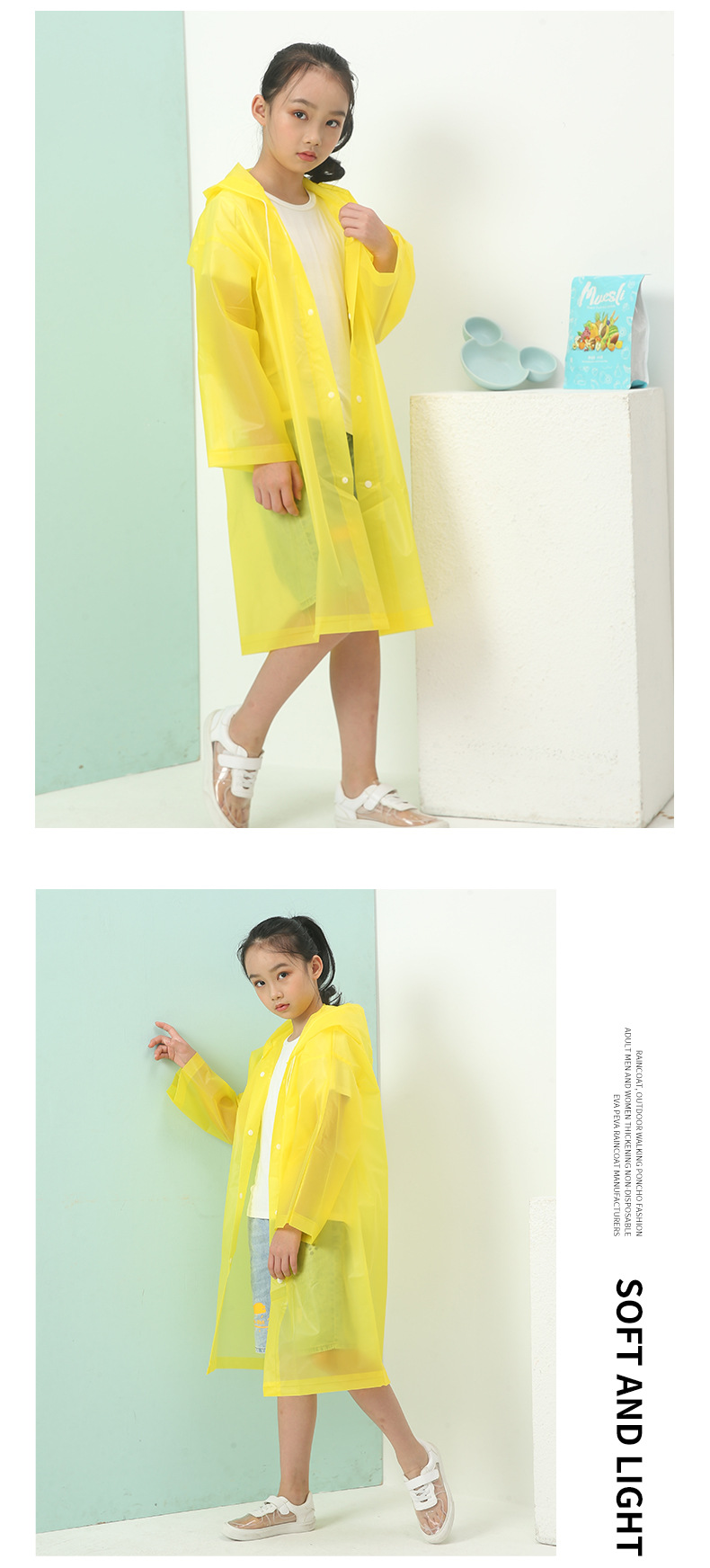 어린이용 비옷 EVA 재사용 가능 18실 5-12세 두꺼운 긴형 폭우 방지 어린이 우비 무광 평면형스토어 가기