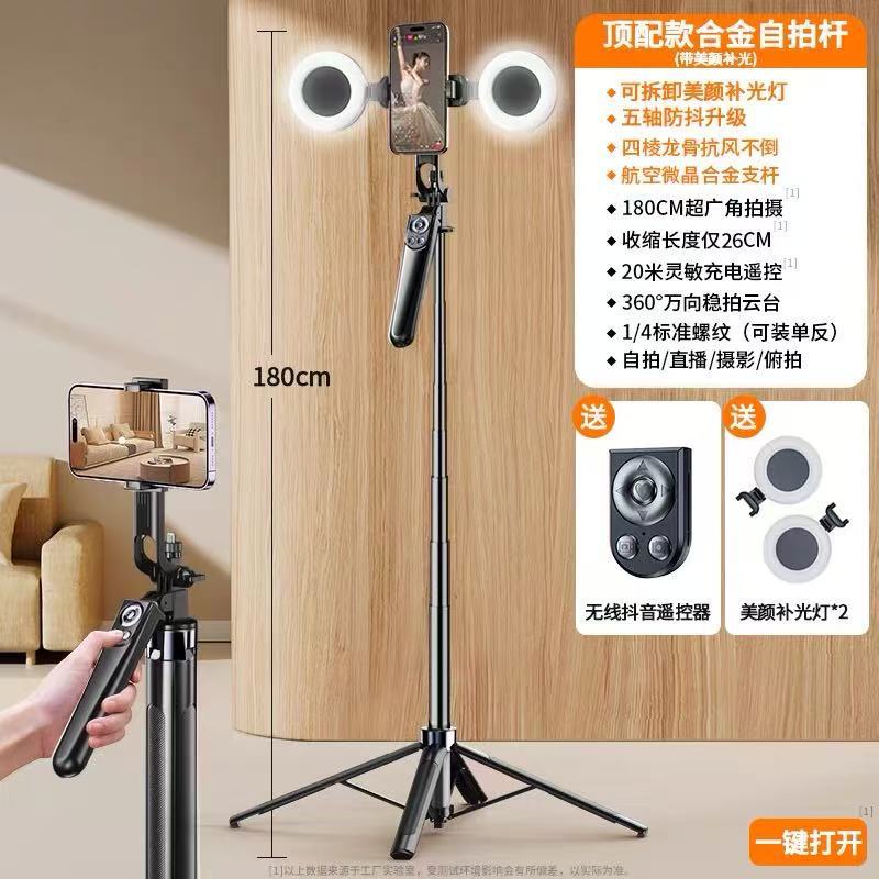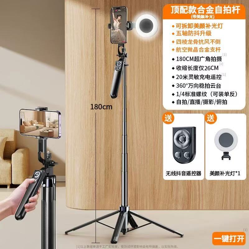 새로운 H29 알루미늄 합금 셀카 스틱 휴대 전화 블루투스 원격 제어 1.8 미터 네발 라이브 방송 브래킷 핸드 헬드 셀카 스틱