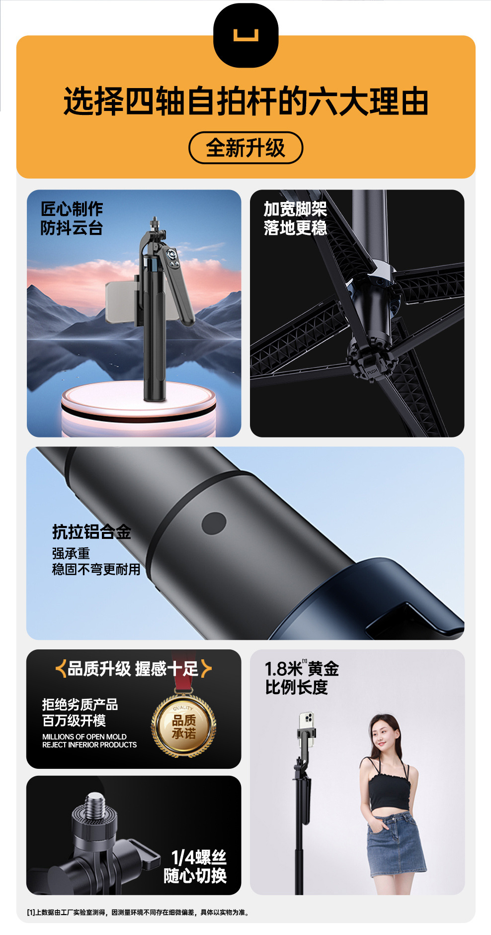 새로운 H29 알루미늄 합금 셀카 스틱 휴대 전화 블루투스 원격 제어 1.8 미터 네발 라이브 방송 브래킷 핸드 헬드 셀카 스틱스토어 가기