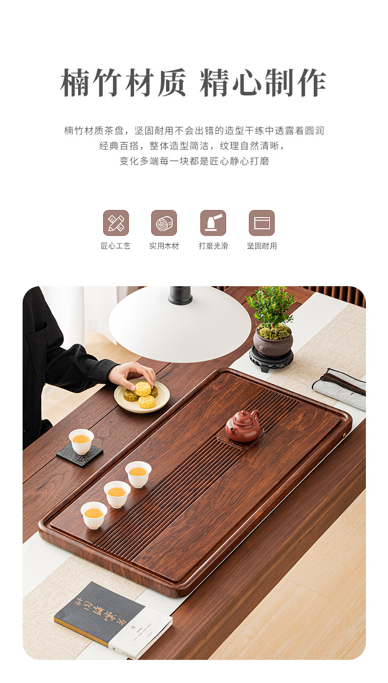 새로운 중국 스타일 대나무와 나무 대나무 차 트레이 가정용 차 세트 세트 전체 차 바다 배수 및 물 저장 작은 차 테이블 대나무 트레이