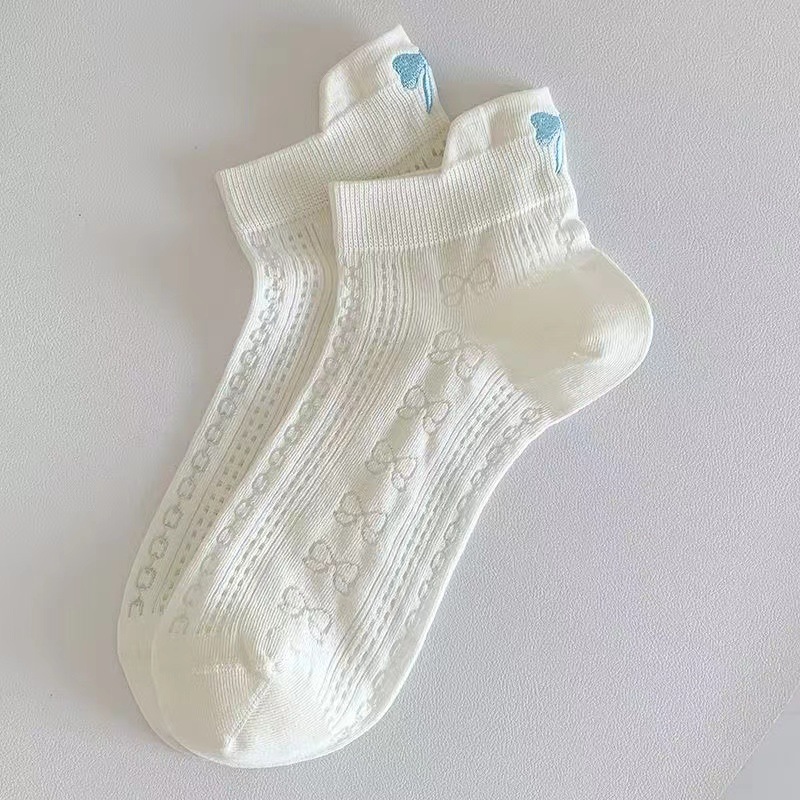 양말 여성용 양말 코튼 메쉬 얇은 통기성 로우 컷 귀여운 활 한국 스타일 짧은 양말 봄과 여름 유행 양말