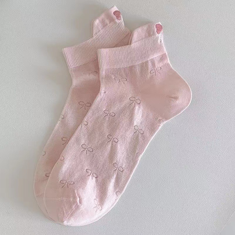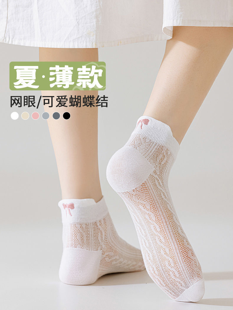 양말 여성용 양말 코튼 메쉬 얇은 통기성 로우 컷 귀여운 활 한국 스타일 짧은 양말 봄과 여름 유행 양말스토어 가기