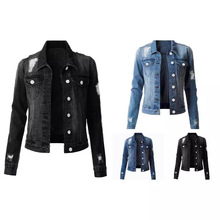 재고 AliExpress 아마존 유럽과 미국의 여자 데님 코트 타이트한 슬림 데님 코트 여성스토어 가기