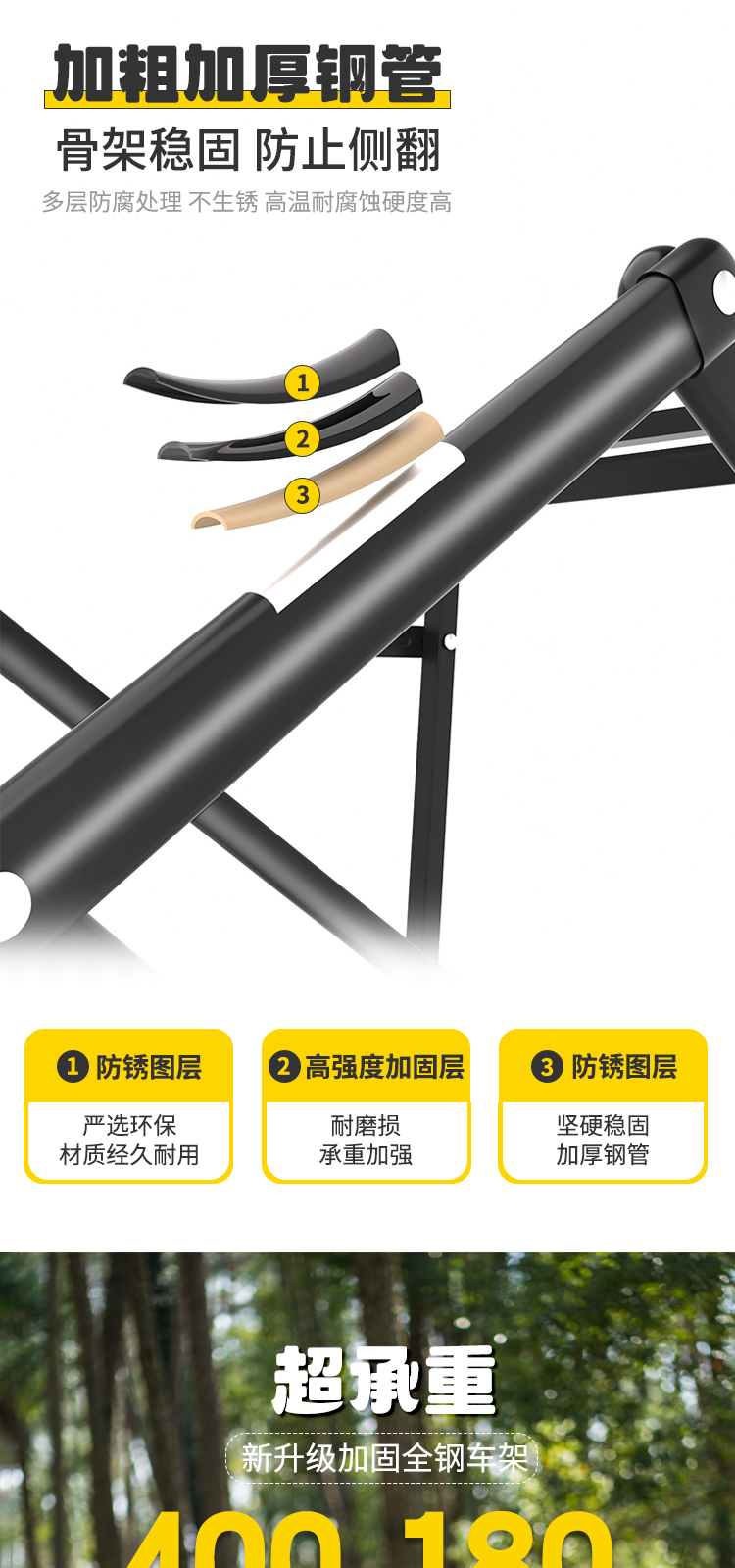 • 업그레이드 된 두꺼운 샴페인 강철 프레임 [ 5inch 고무 바퀴/내하중 200kg ] 두꺼운 모든 강철