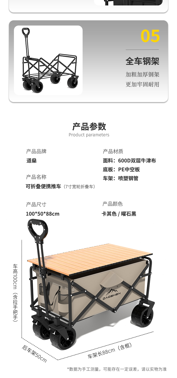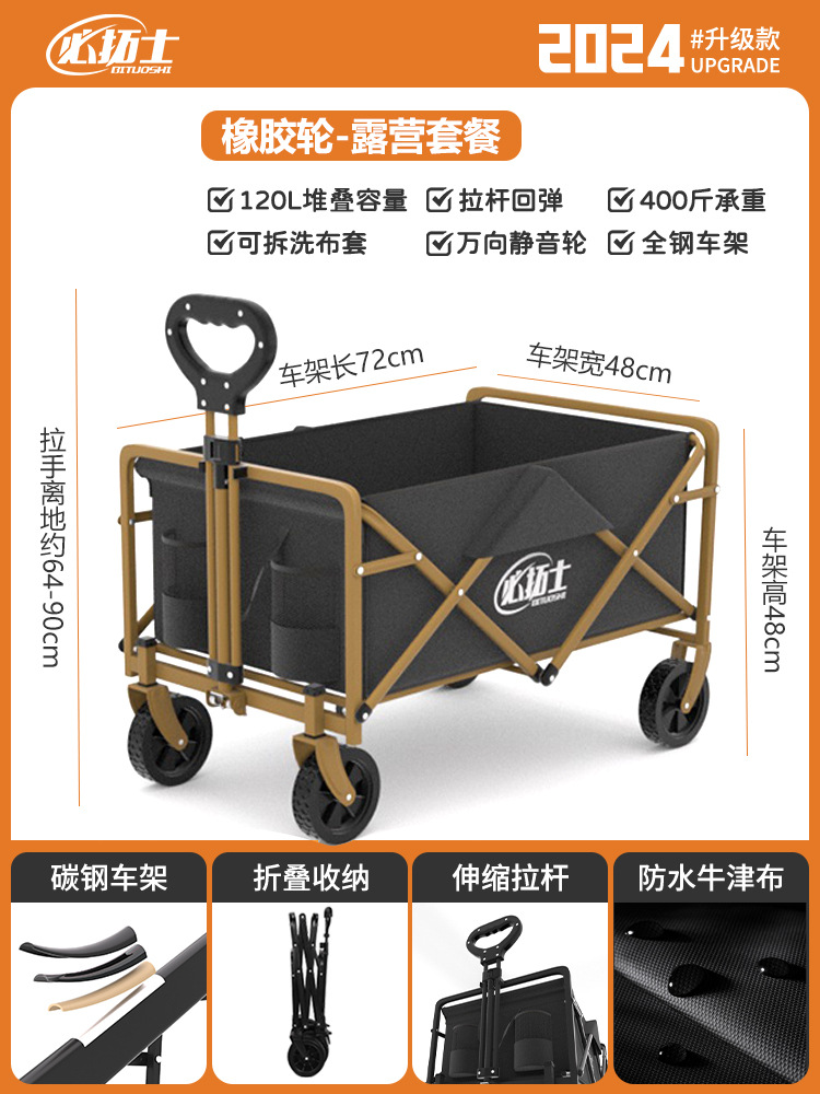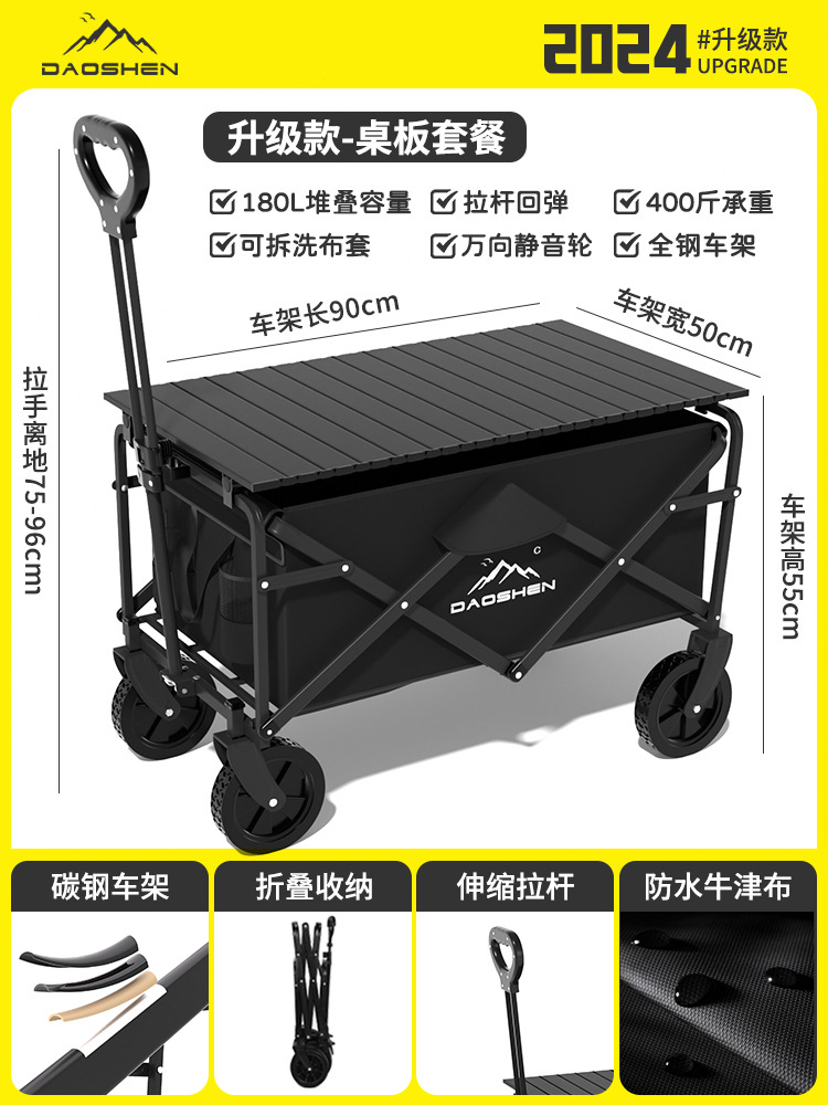 야외 캠핑 트롤리 캠프 자동차 캠핑 접이식 대용량 트롤리 자동차 피크닉 라이트 여행 작은 트레일러스토어 가기