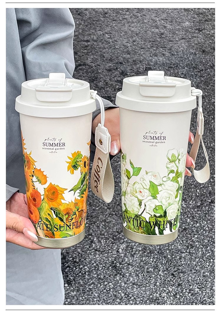 가벼운 고급 보온병 컵 겨울 남자 우유 차 더블 마시는 입 티 컵 여자의 높은 가치 짚 선물 컵스토어 가기