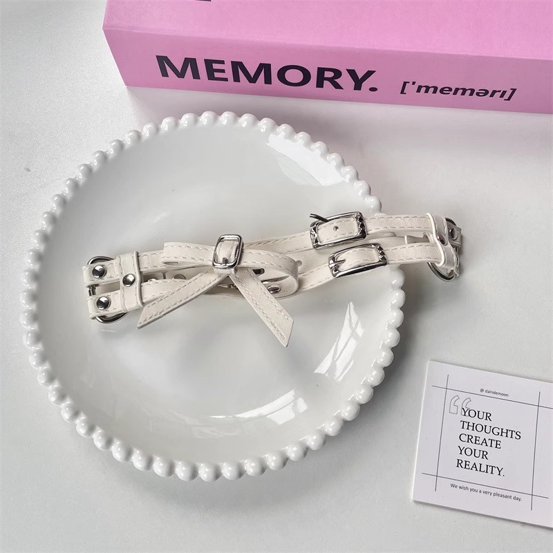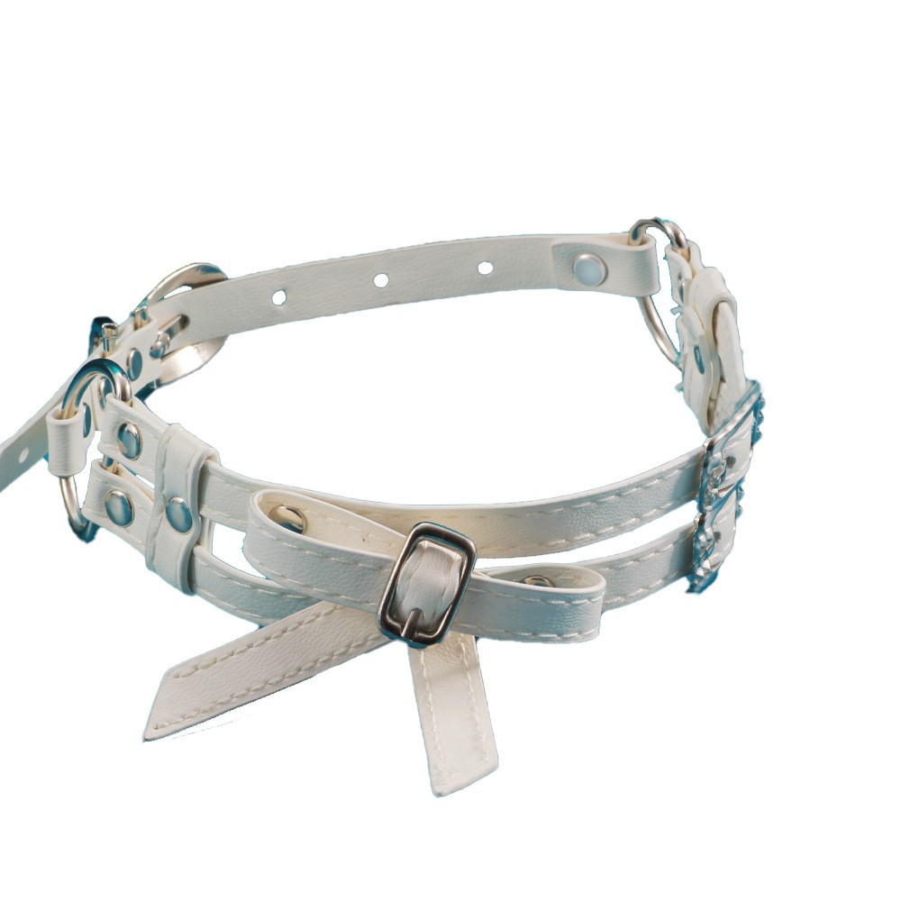새로운 패션 개인화 된 하위 문화 유행 여성 목 칼라 화이트 틈새 더블 레이어 벨트 활 목걸이 목걸이