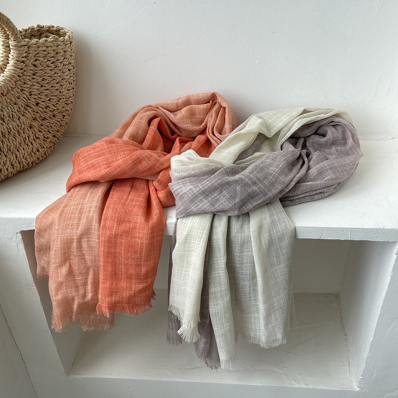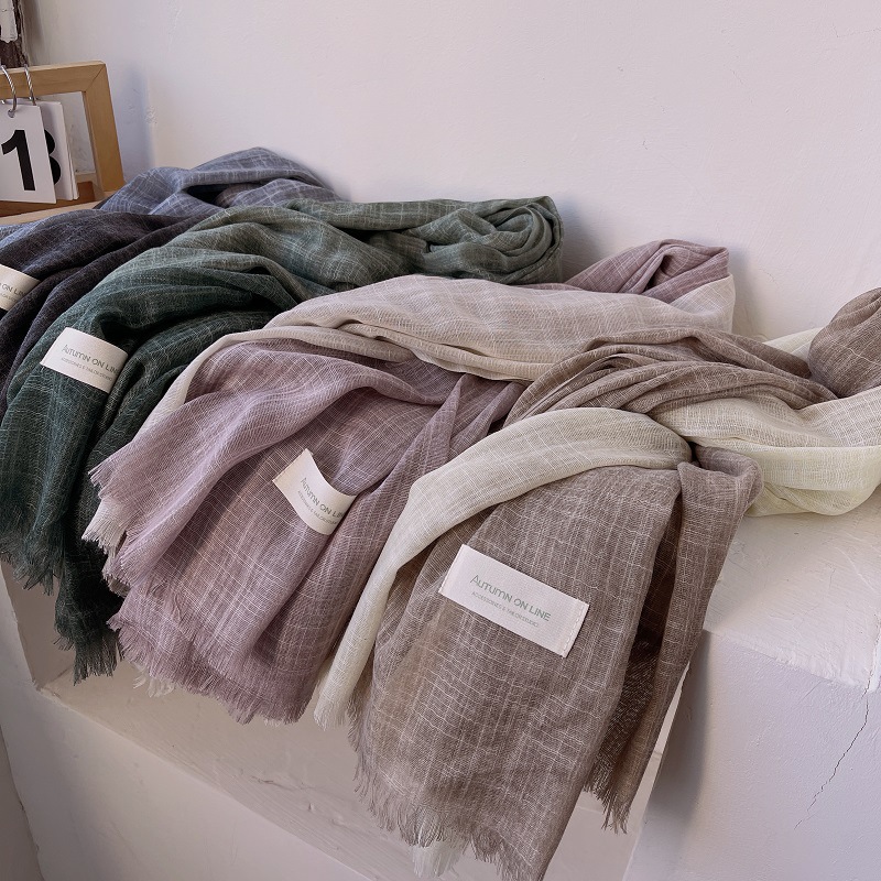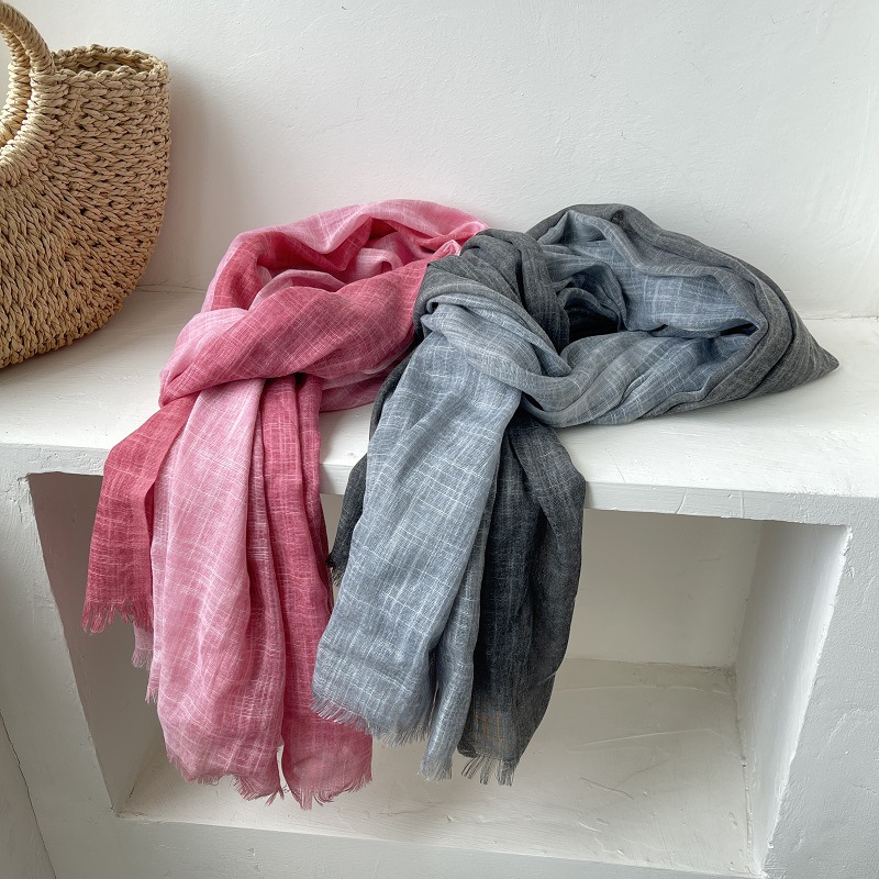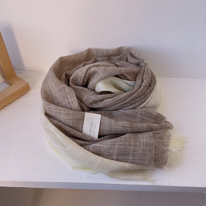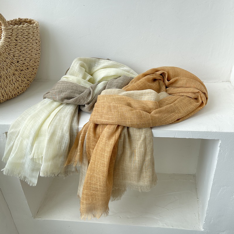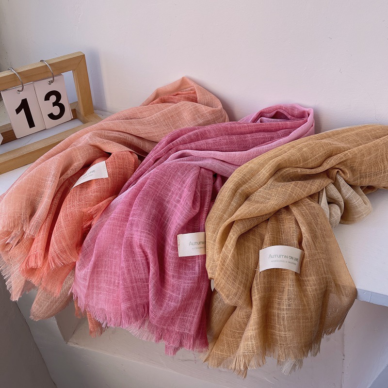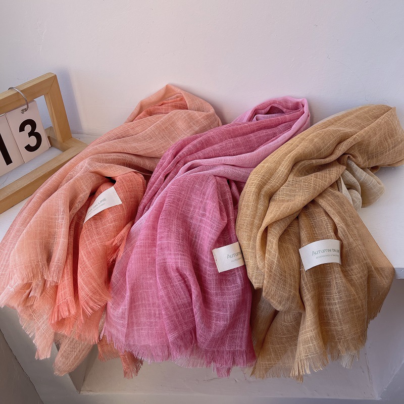 우아한 대비 컬러 예술적 스카프 여성의 모리 코튼 린넨 봄과 여름 얇은 긴 그라디언트 실크 스카프 올매치 넥 보호 목도리 여성스토어 가기