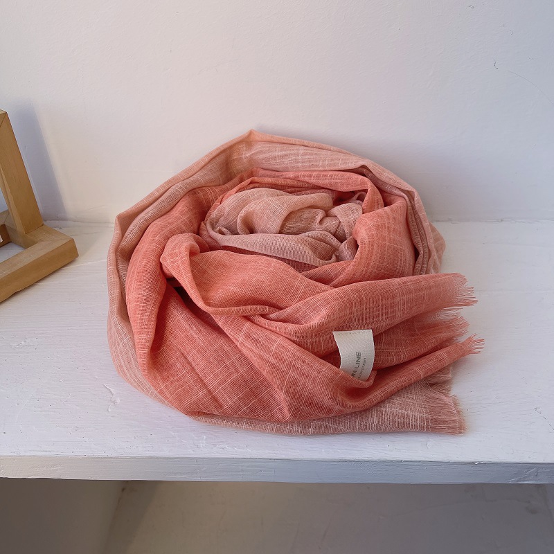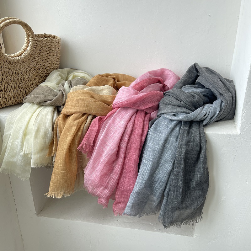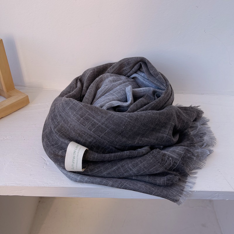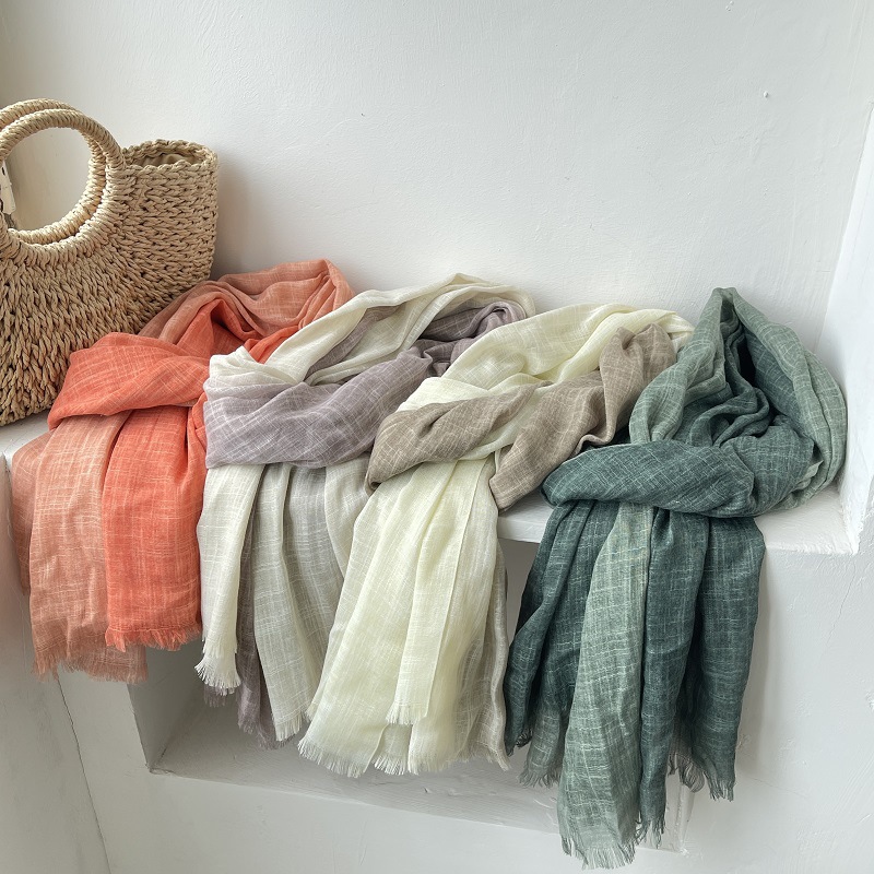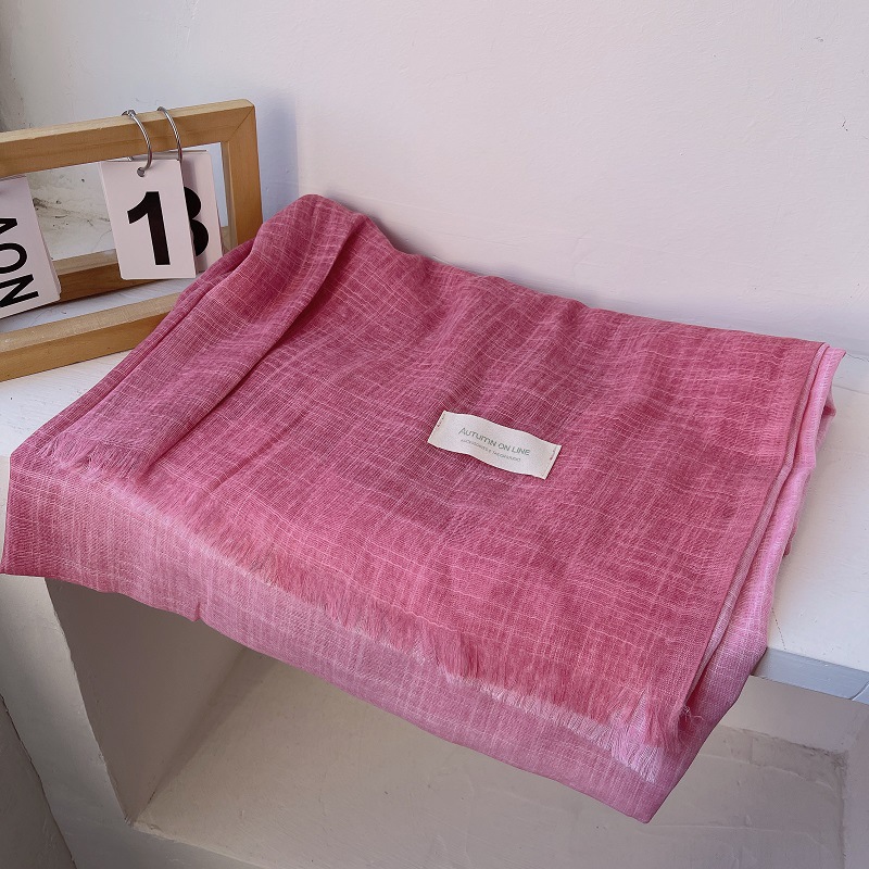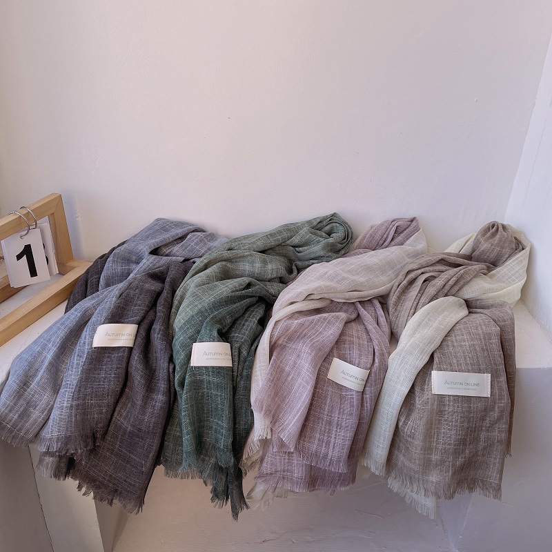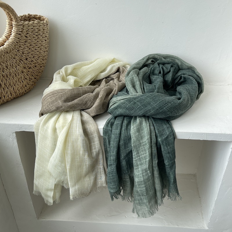 우아한 대비 컬러 예술적 스카프 여성의 모리 코튼 린넨 봄과 여름 얇은 긴 그라디언트 실크 스카프 올매치 넥 보호 목도리 여성스토어 가기