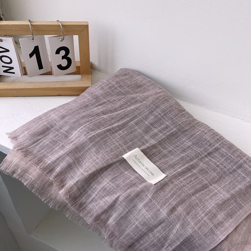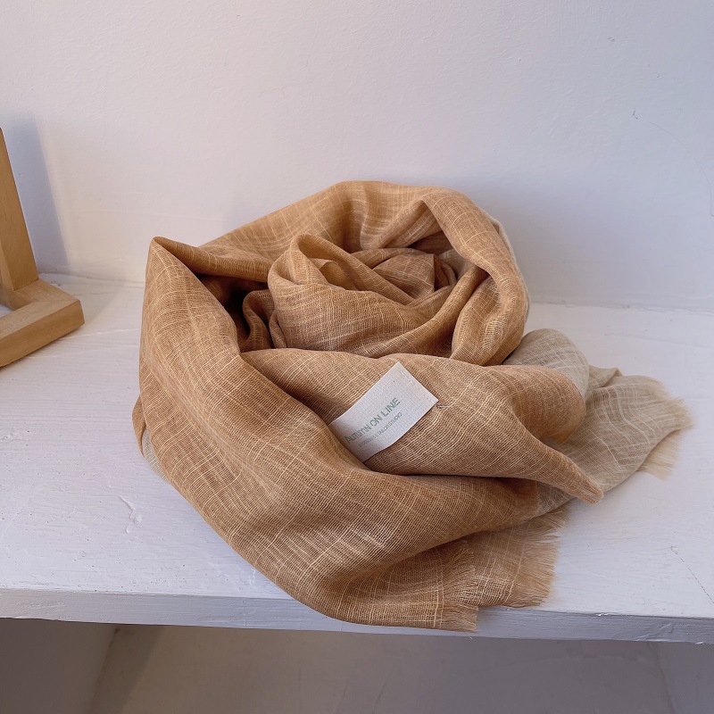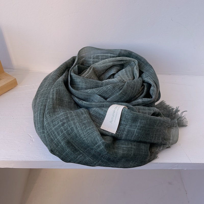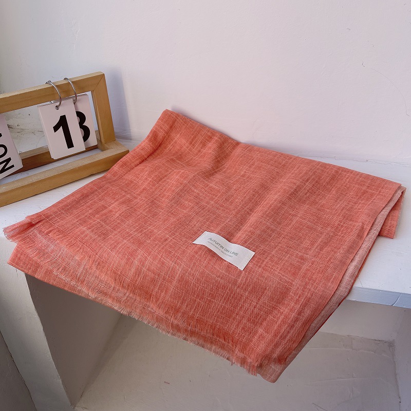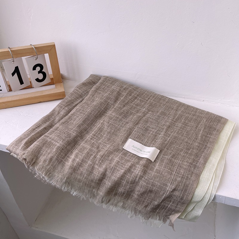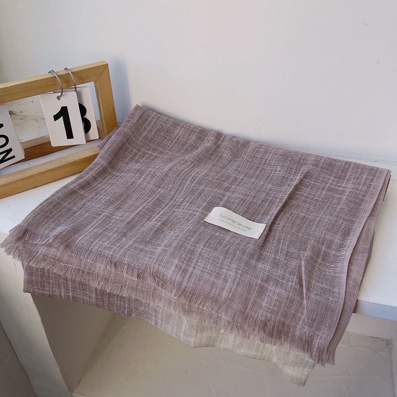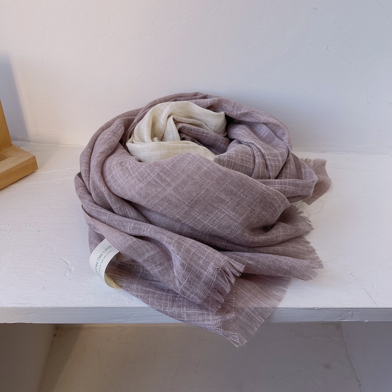 우아한 대비 컬러 예술적 스카프 여성의 모리 코튼 린넨 봄과 여름 얇은 긴 그라디언트 실크 스카프 올매치 넥 보호 목도리 여성스토어 가기