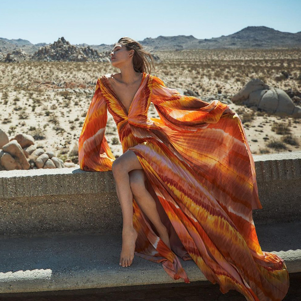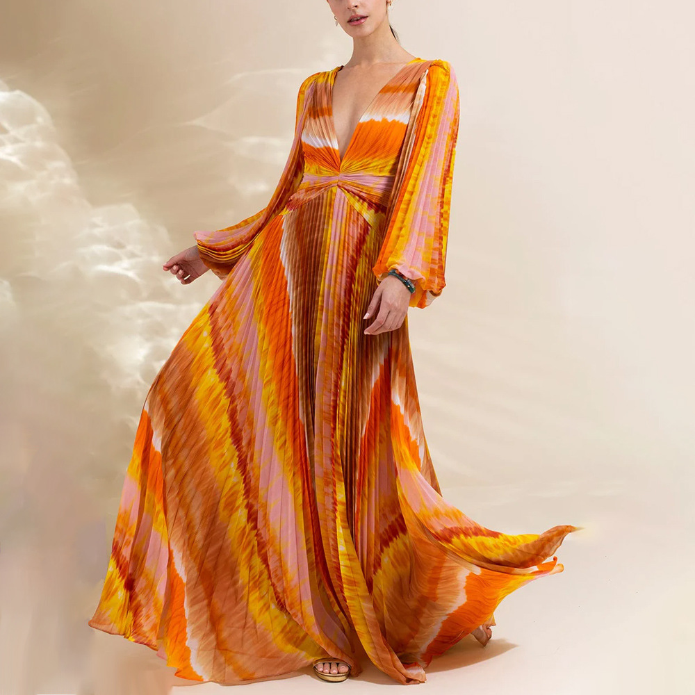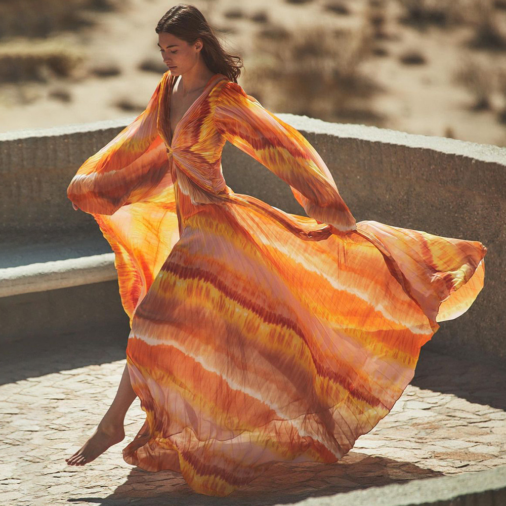 2024 유럽과 미국의 새로운 아마존 AliExpress V 넥 긴 소매 원피스 수영복 여성 휴가 해변 국경 폭발스토어 가기