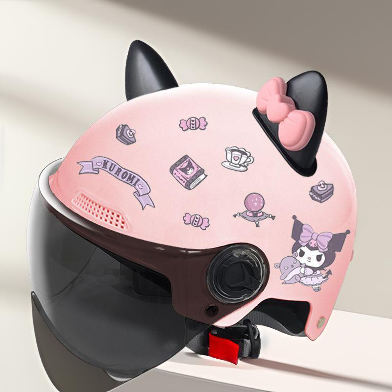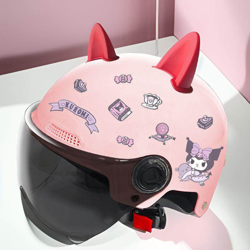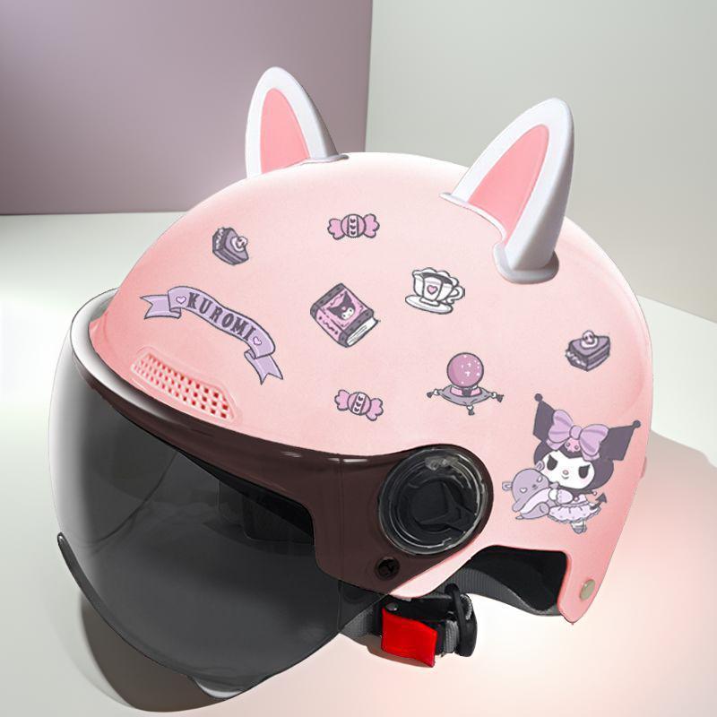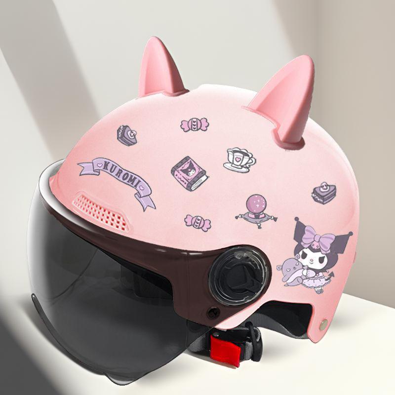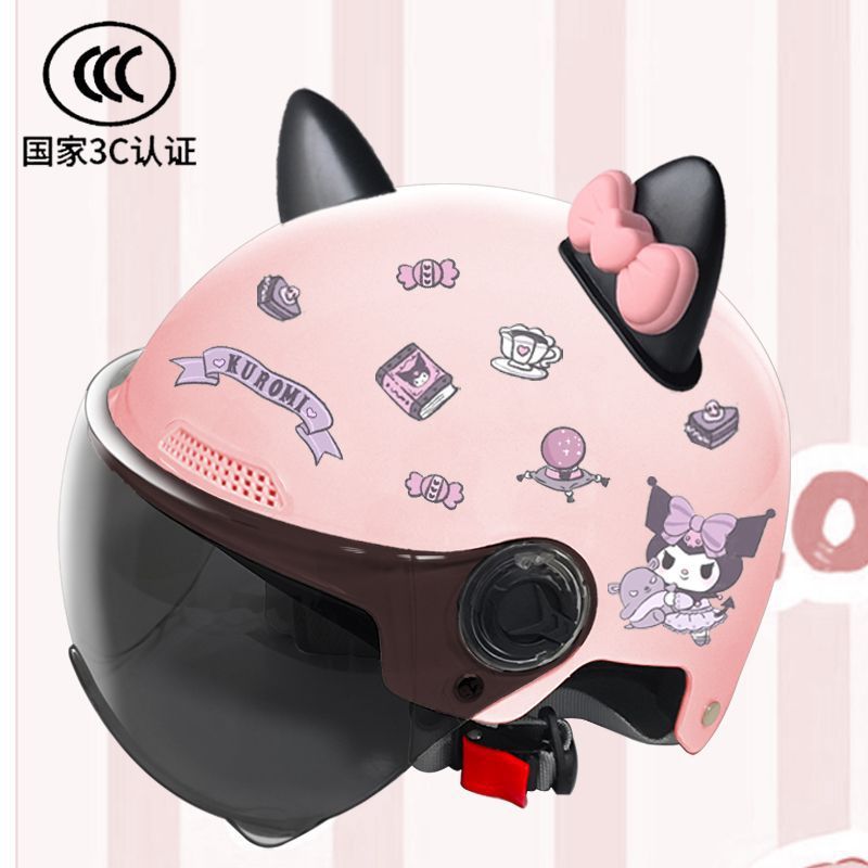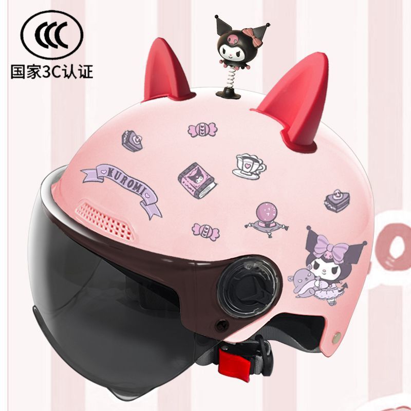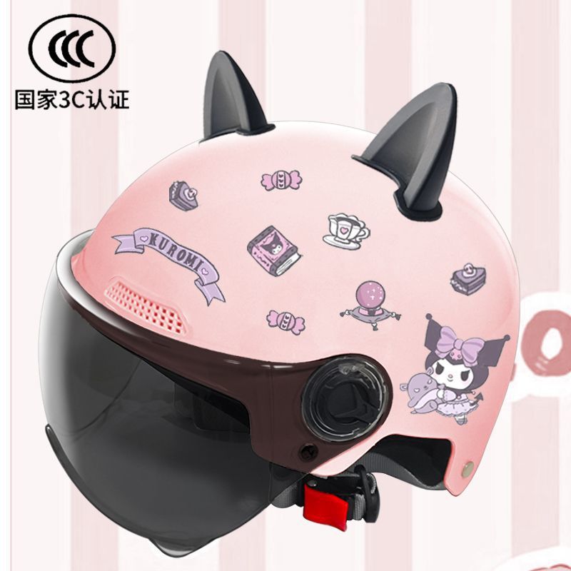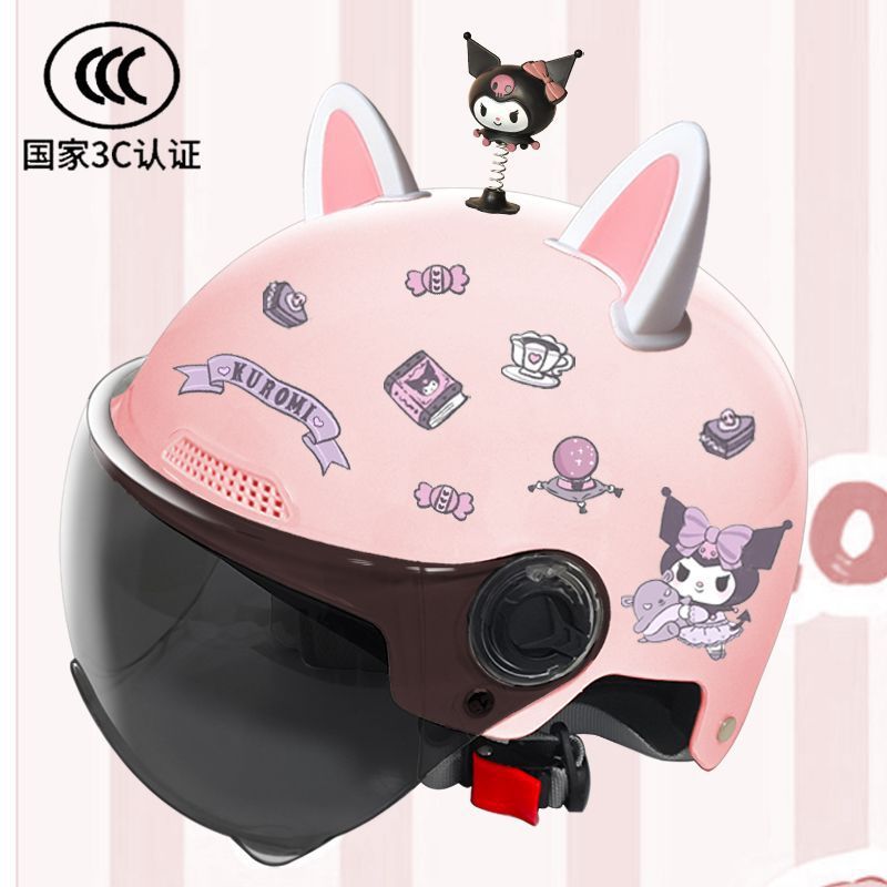새로운 3C 인증 전기 배터리 자동차 헬멧 남자와 여자를위한 귀여운 여름 헬멧 사계절 만화 커플 선 스크린