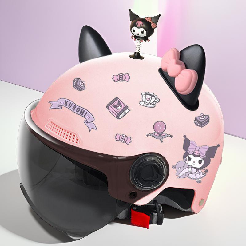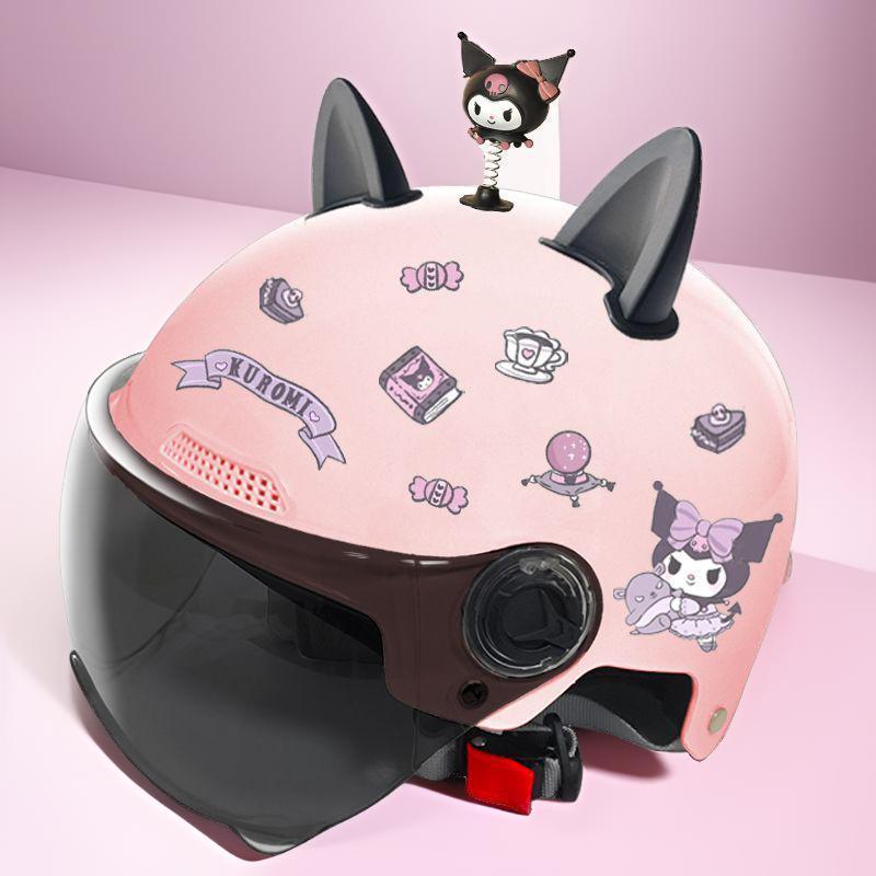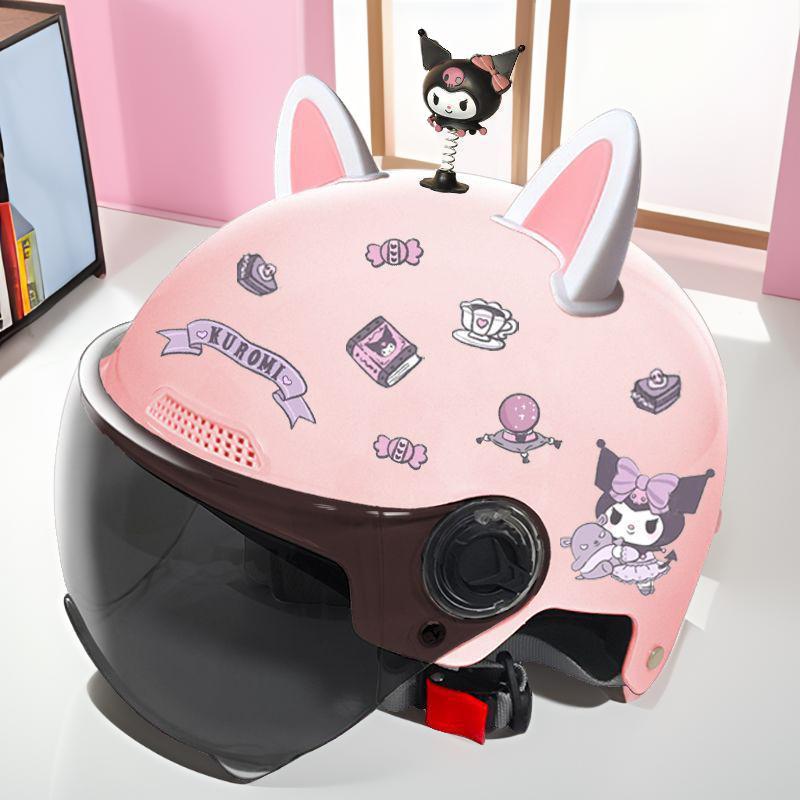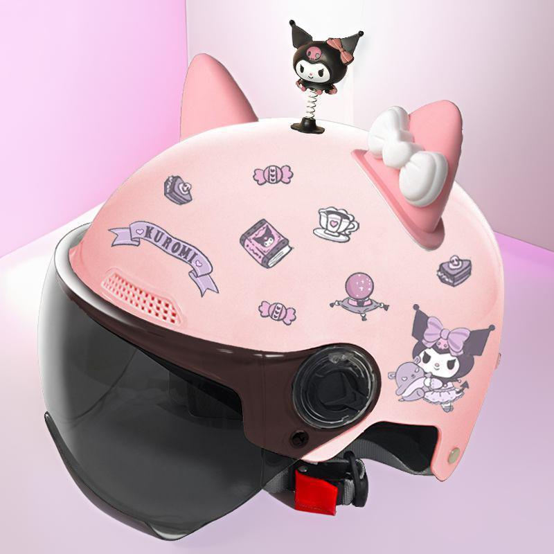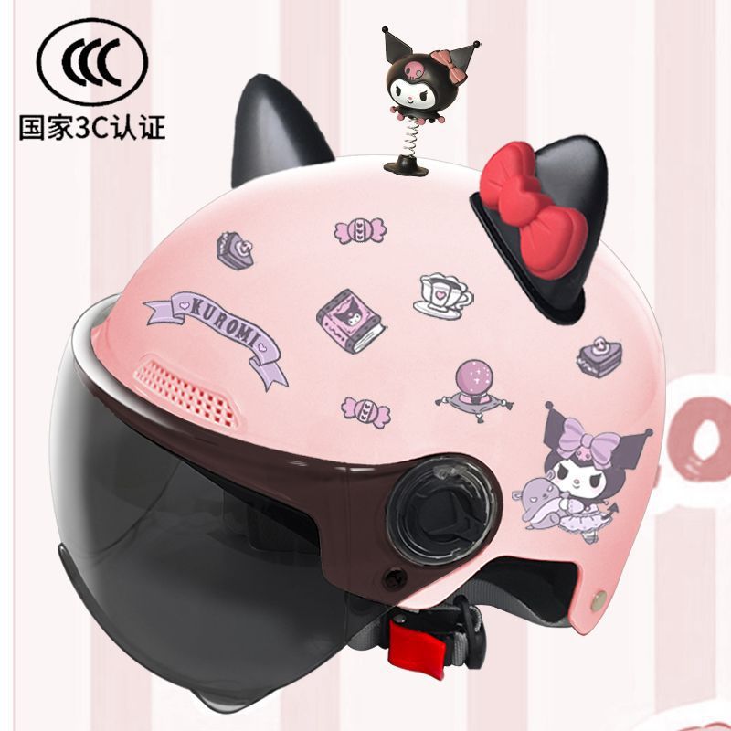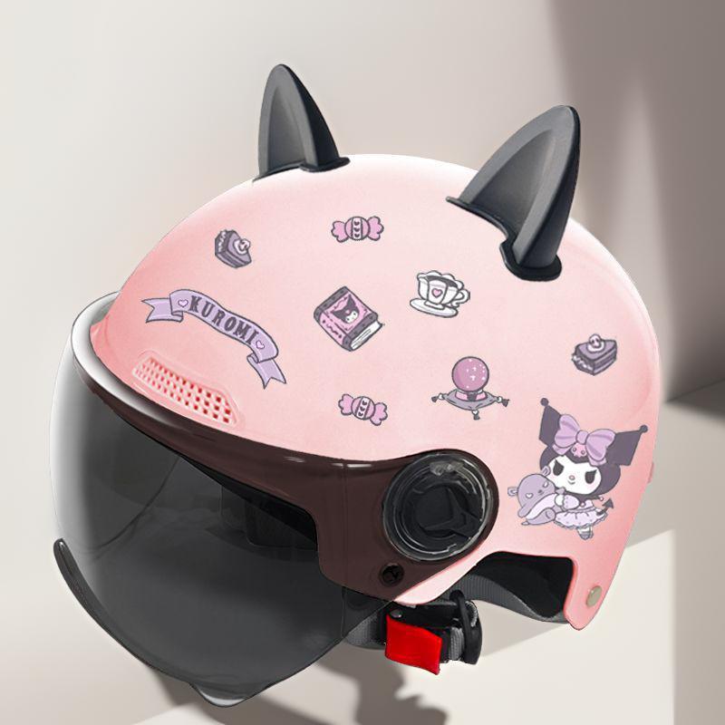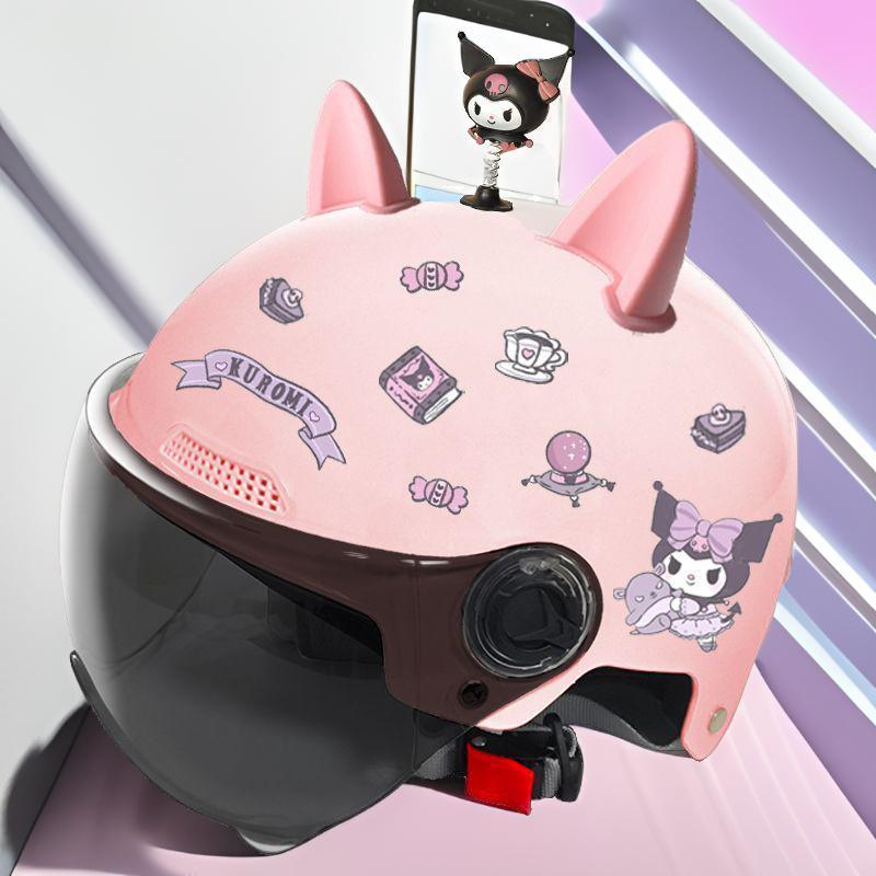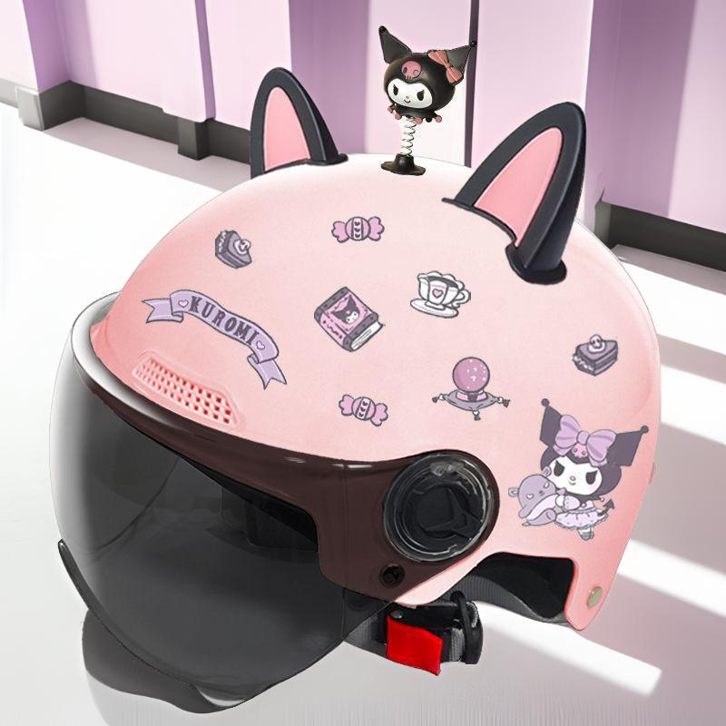 새로운 3C 인증 전기 배터리 자동차 헬멧 남자와 여자를위한 귀여운 여름 헬멧 사계절 만화 커플 선 스크린