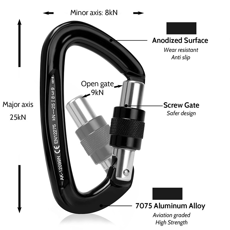 • D형 걸쇠, 올 블랙 XINDA(2개 팩)