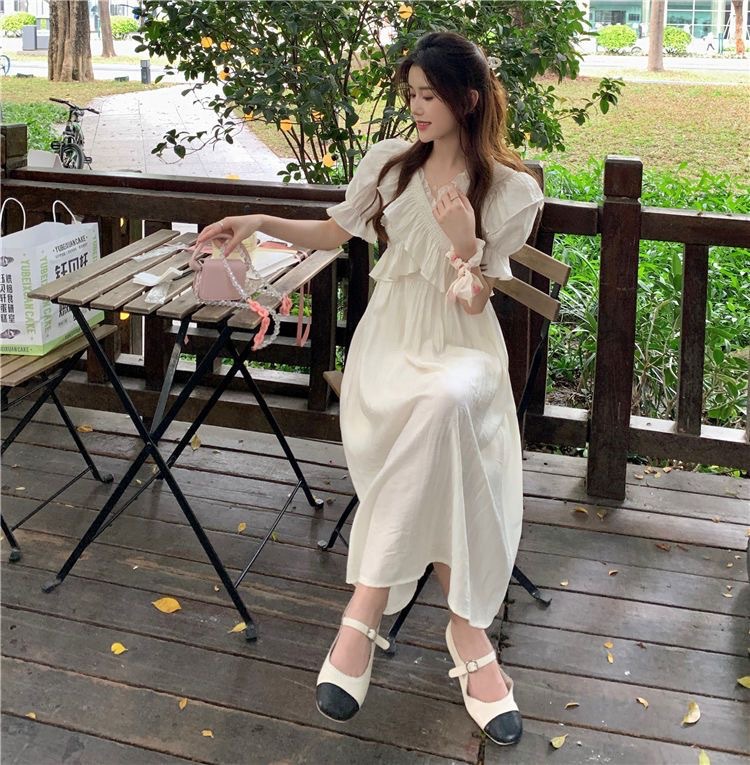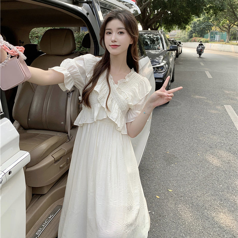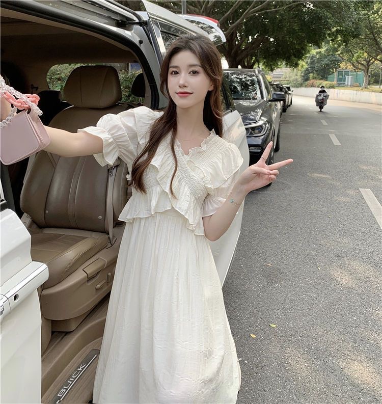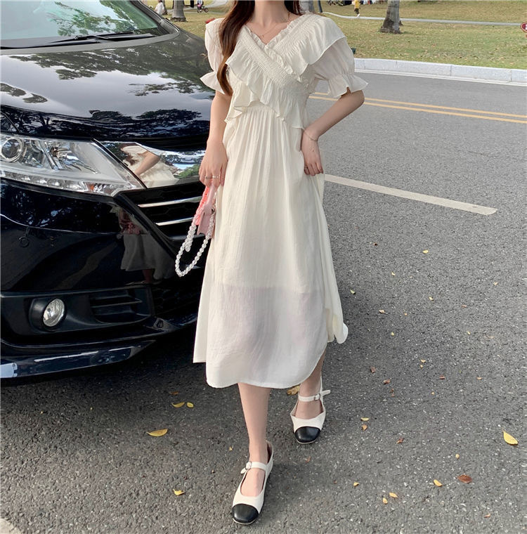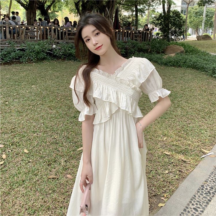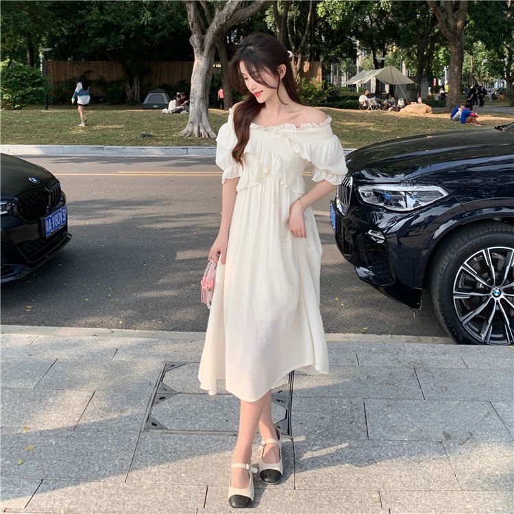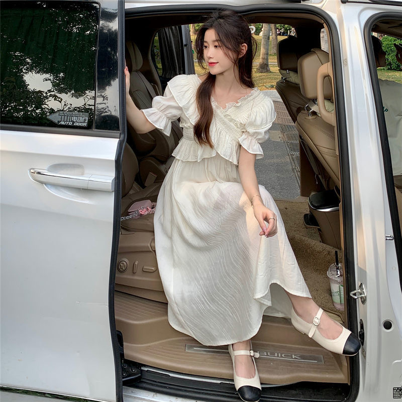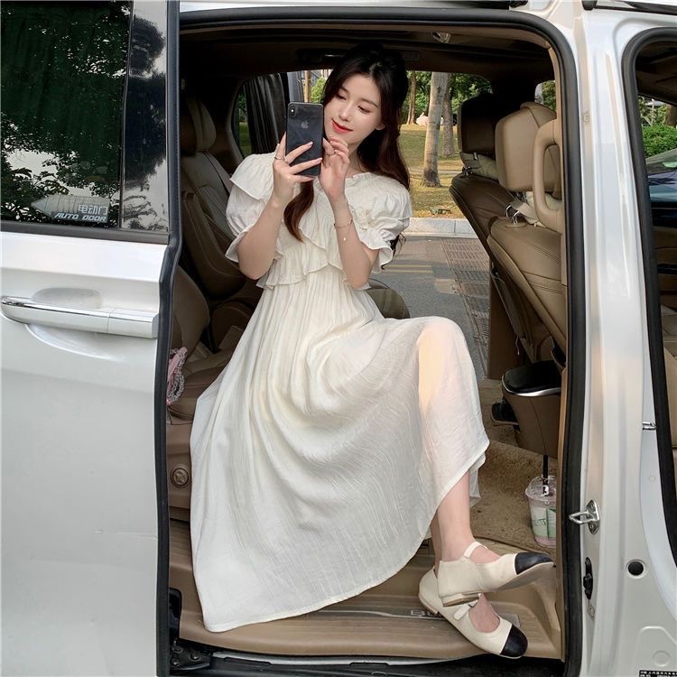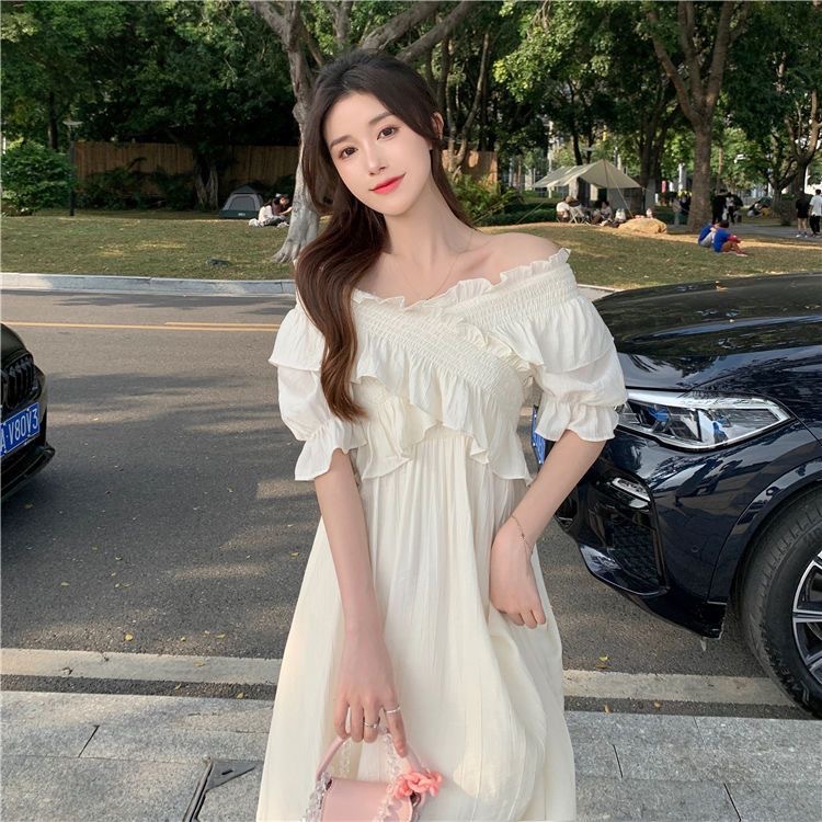세련된 높은 허리 슬리밍 프랑스 스타일 레트로 원피스 여성 여름 틈새 디자인 센스 우아한 레이디 스타일 원피스 여성스토어 가기